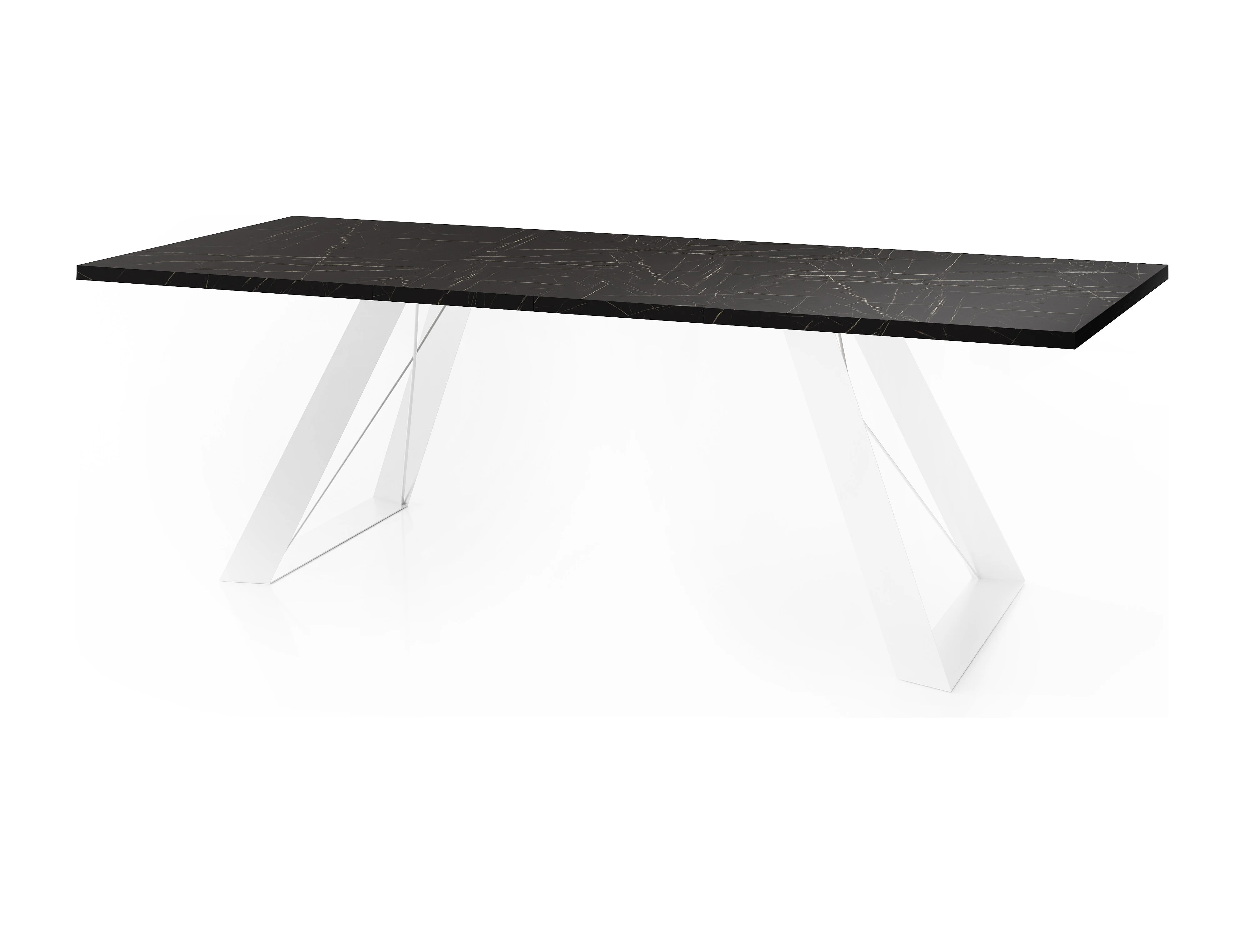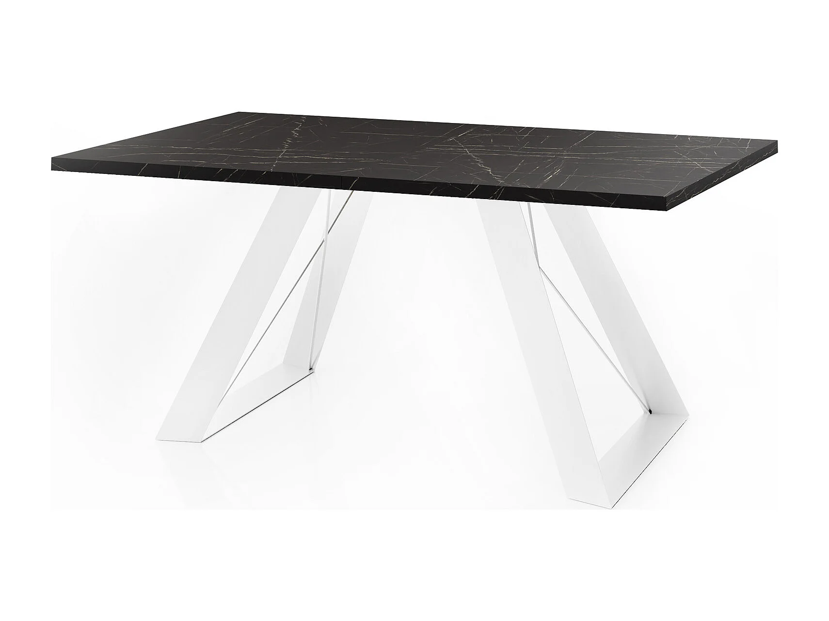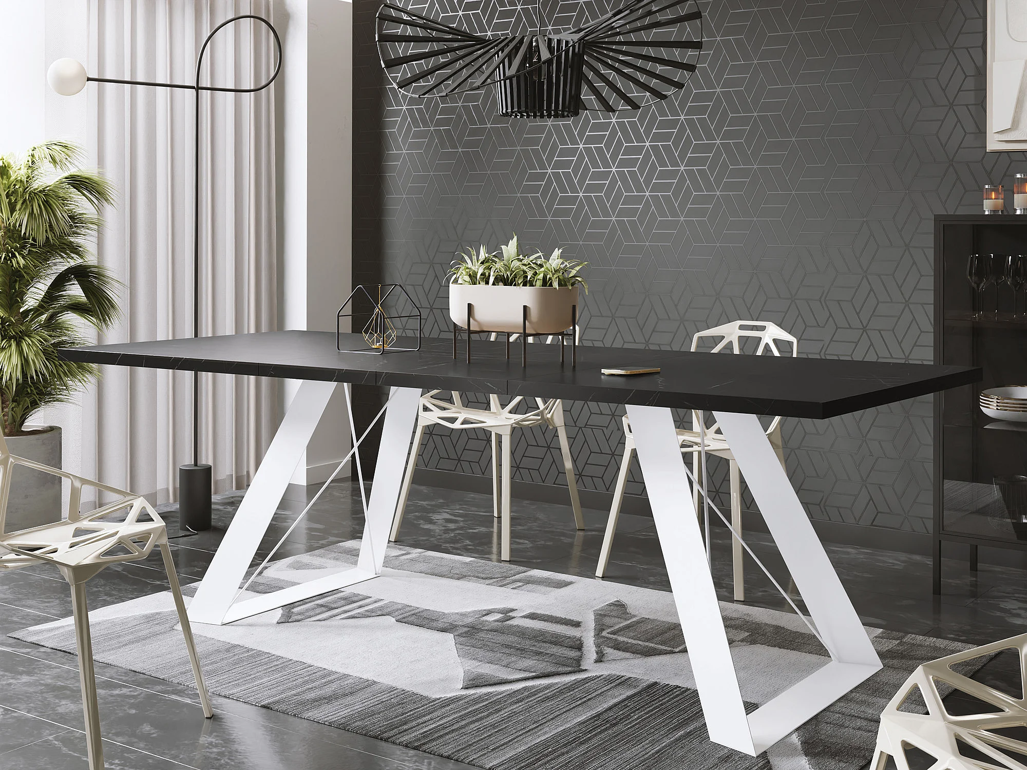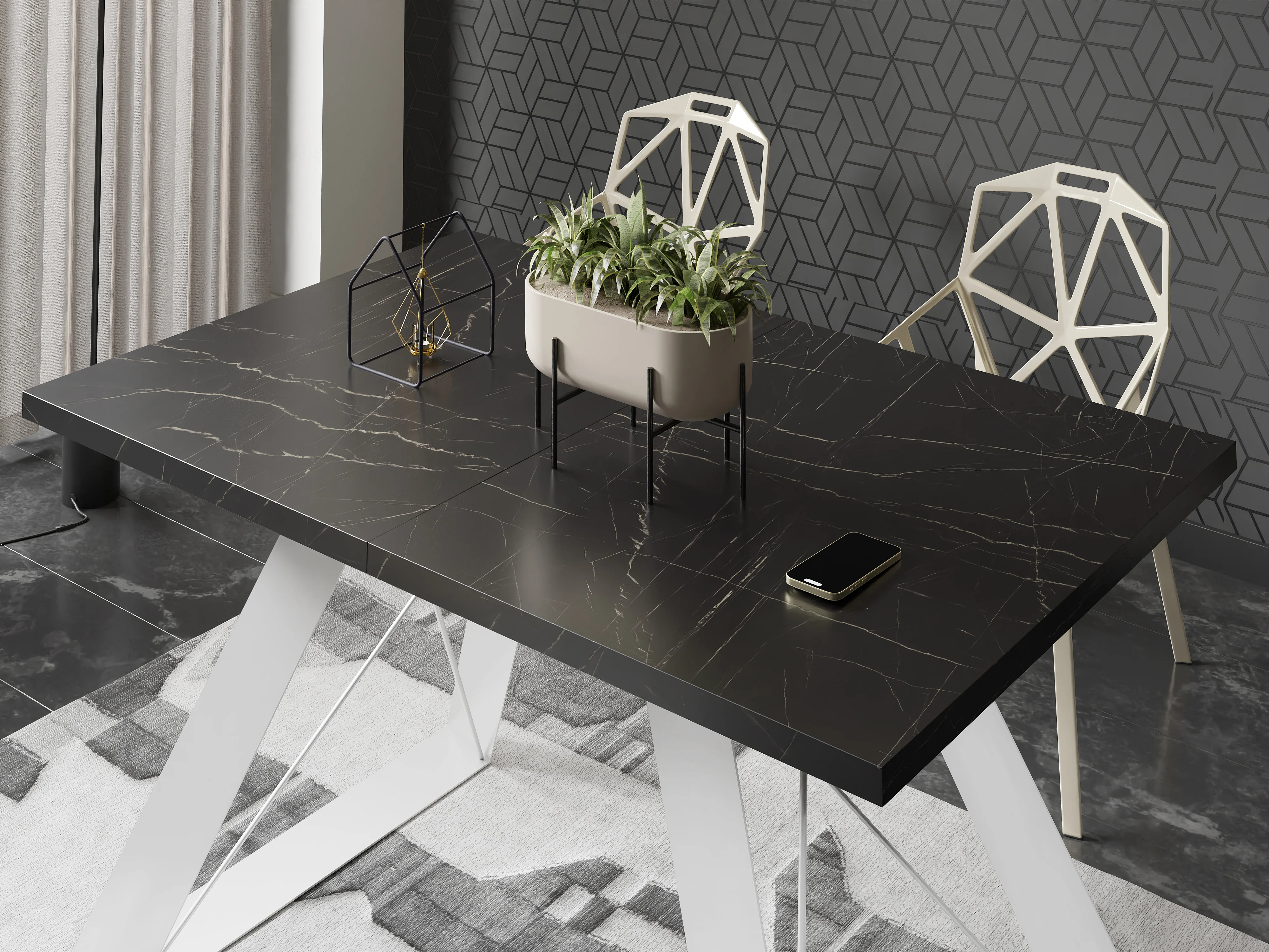 Table à Manger Rectangulaire Extensible avec Cadre Métallique Noir – Table Économiseuse d'Espace Style Loft pour Salon – Blanc avec Pieds Métalliques Noirs – 160...
