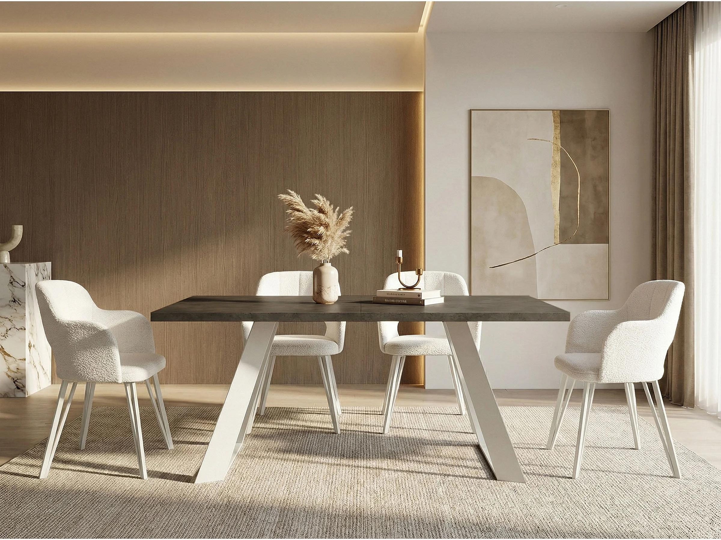 Table à Manger Rectangulaire Extensible avec Cadre Métallique Noir – Table Économiseuse d'Espace Style Loft pour Salon – Blanc avec Pieds Métalliques Noirs – 160...