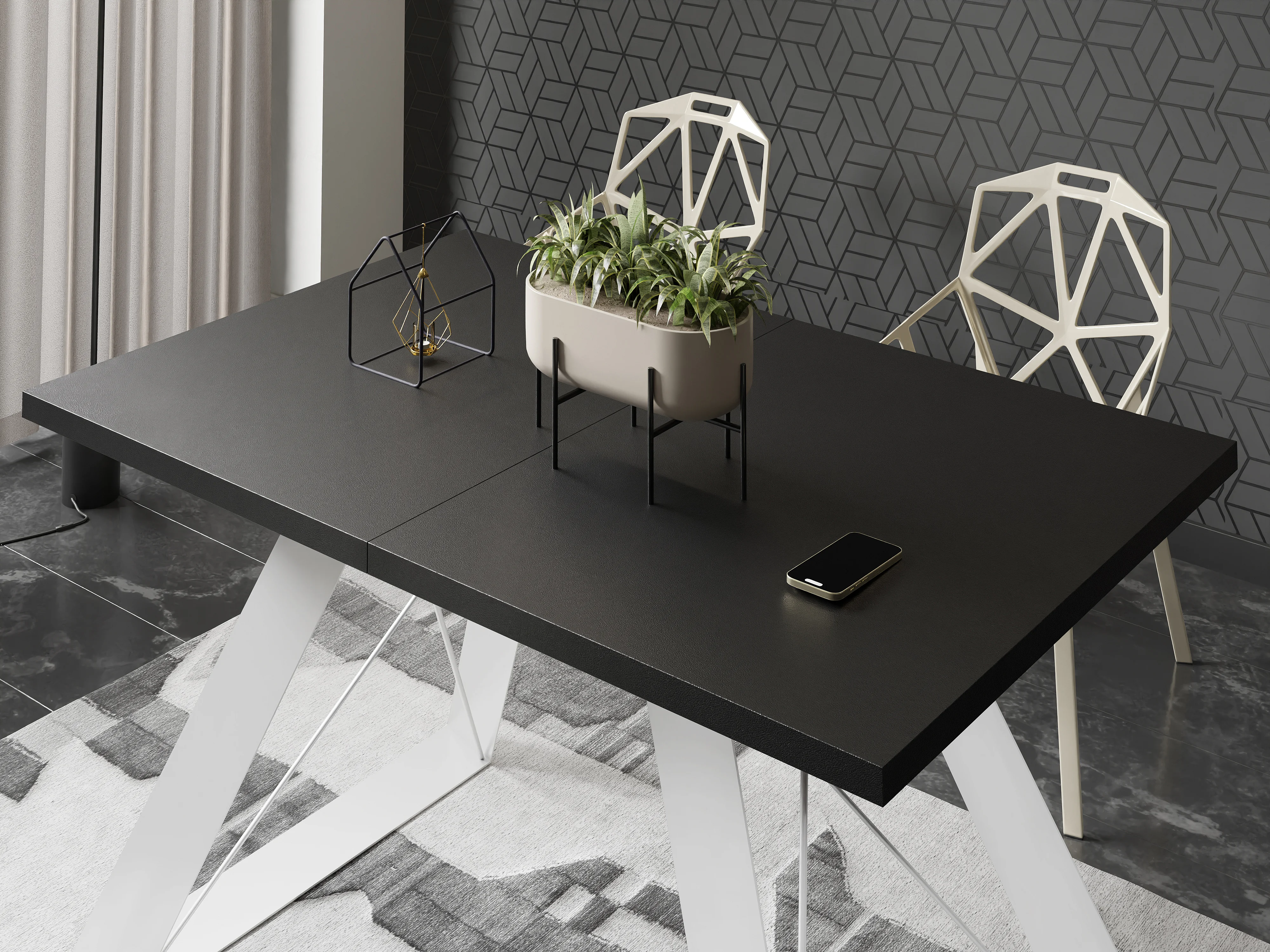 Table à Manger Rectangulaire Extensible avec Cadre Métallique Noir – Table Économiseuse d'Espace Style Loft pour Salon – Blanc avec Pieds Métalliques Noirs – 160...