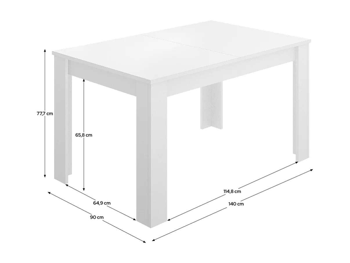 Table à manger rectangulaire extensible, coloris blanc - Hauteur 77 x Longueur 140-190 x Profondeur 90 cm