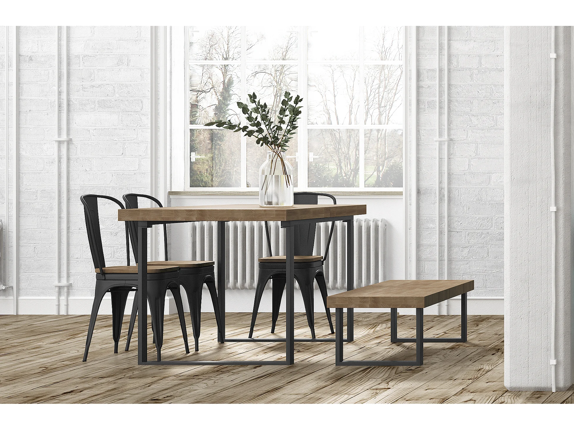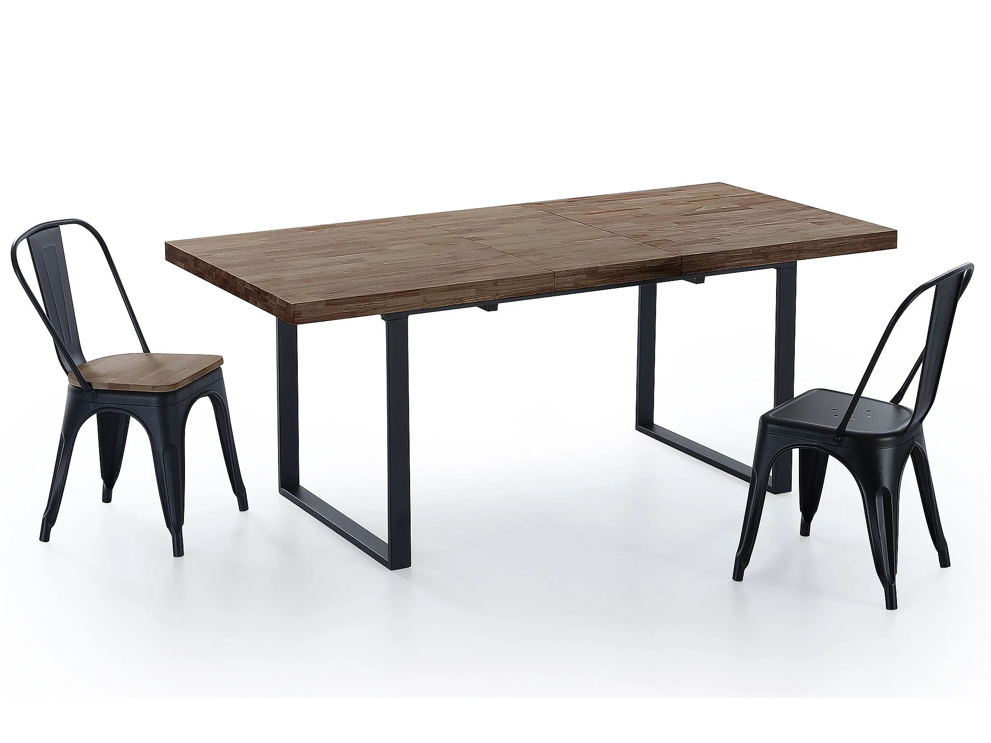 Table à manger rectangulaire extensible coloris chêne américain / pieds noir , Longueur 140 - 180 x largeur 80 x Hauteur 76 cm