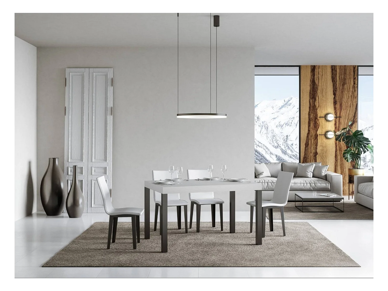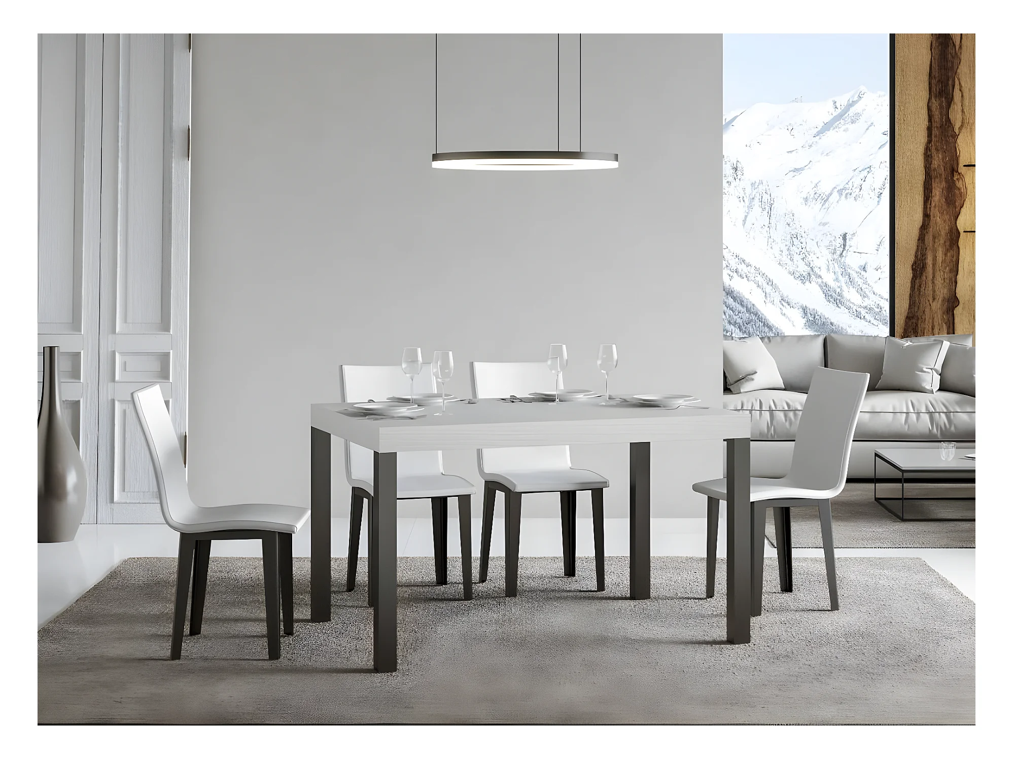 Table à manger rectangulaire frêne blanc et métal anthracite Evy 130cm