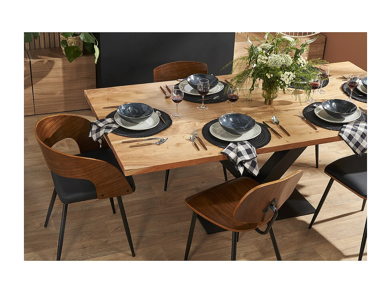 Table à manger rectangulaire industrielle en bois massif et métal noir L200 cm VALLEY