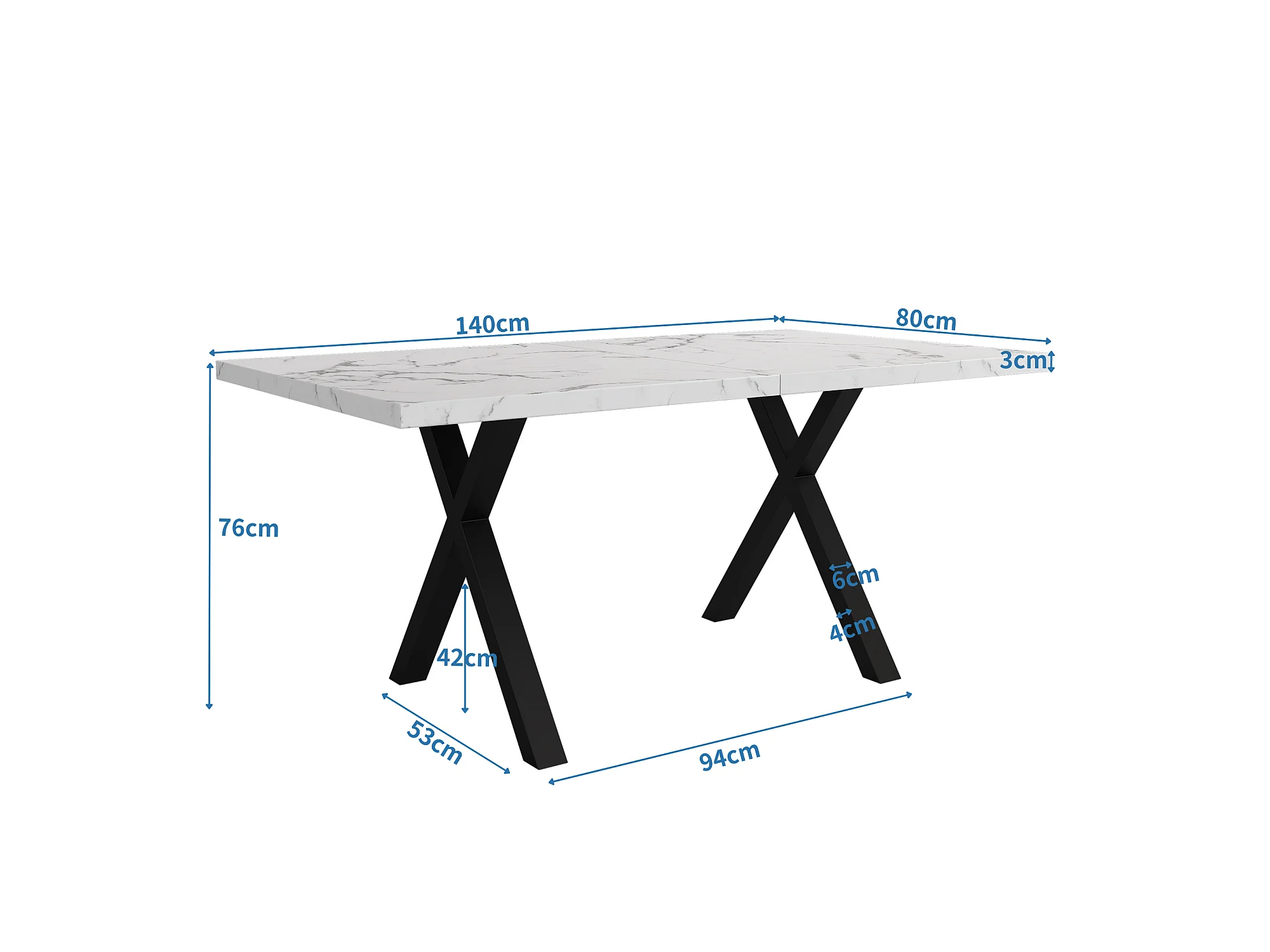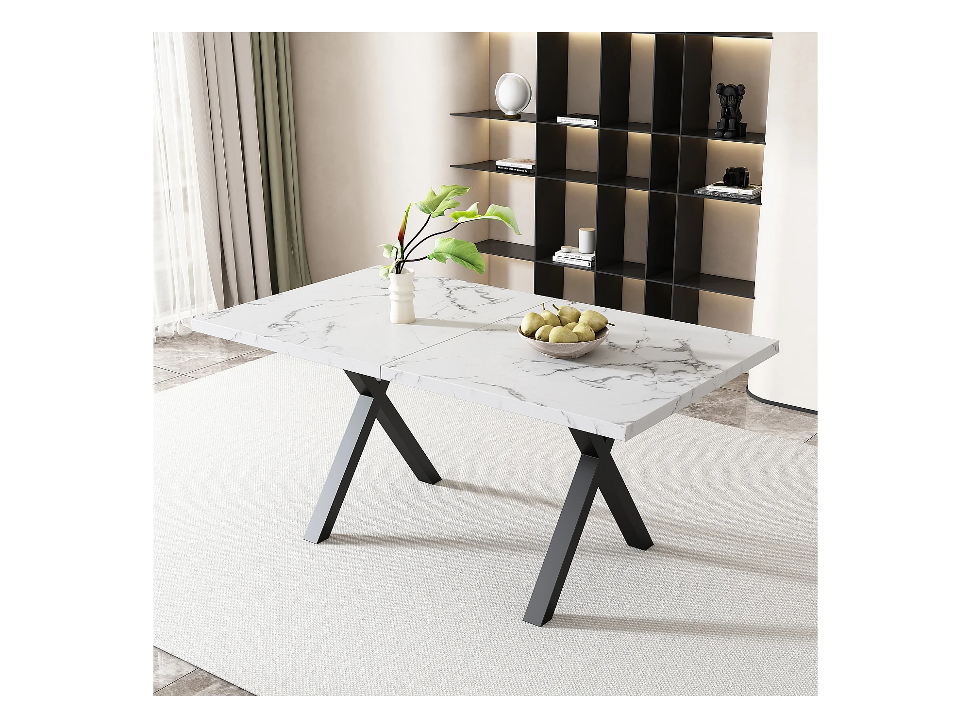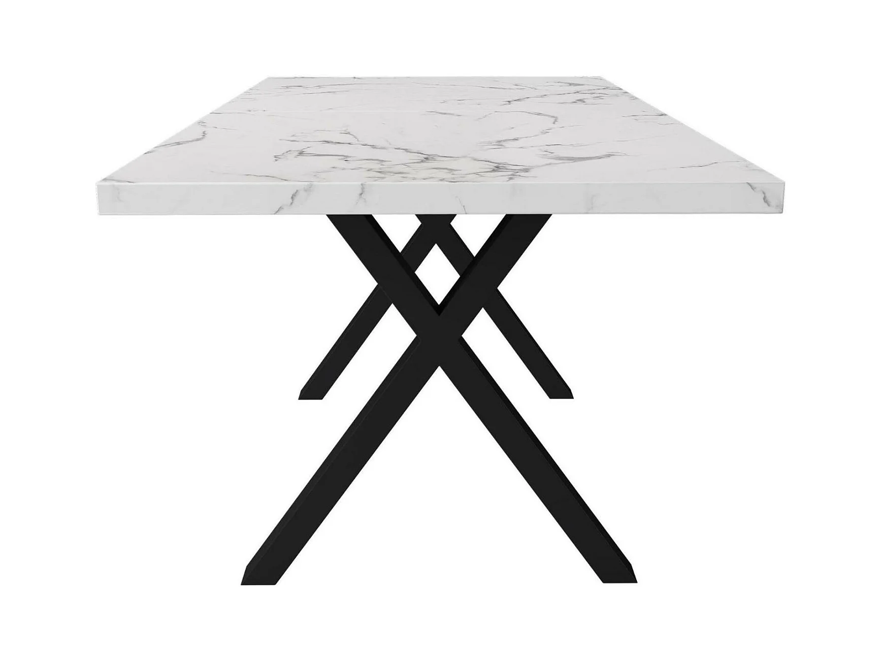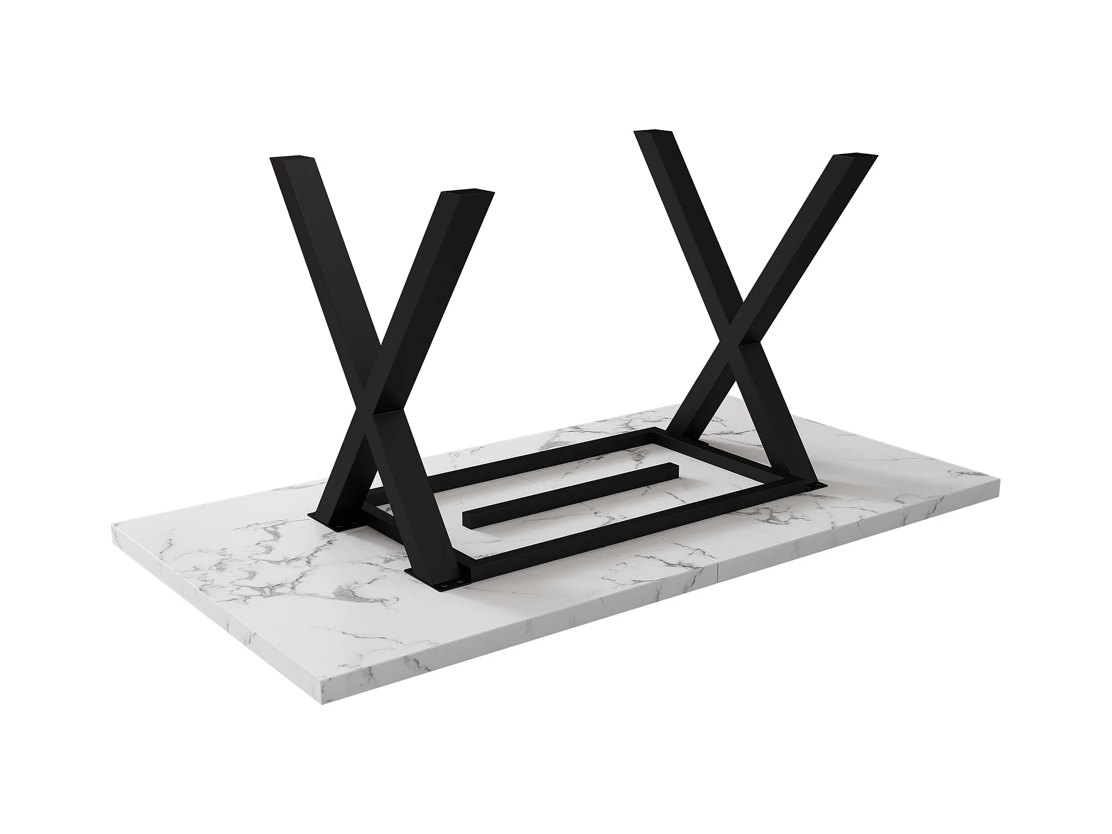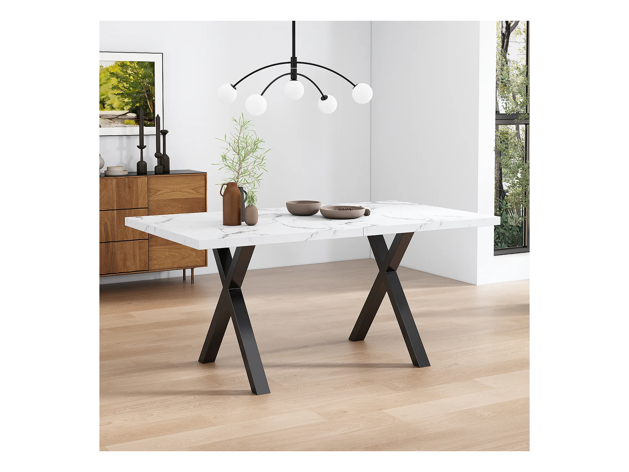 Table à manger rectangulaire - pieds en forme de X en fer forgé - Blanc