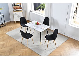 Table à Manger Rectangulaire,Style Scandinave,Plateaux en MDF Imitation Marbre,Pieds en Métal,Noir/Doré,2-4 Personnes