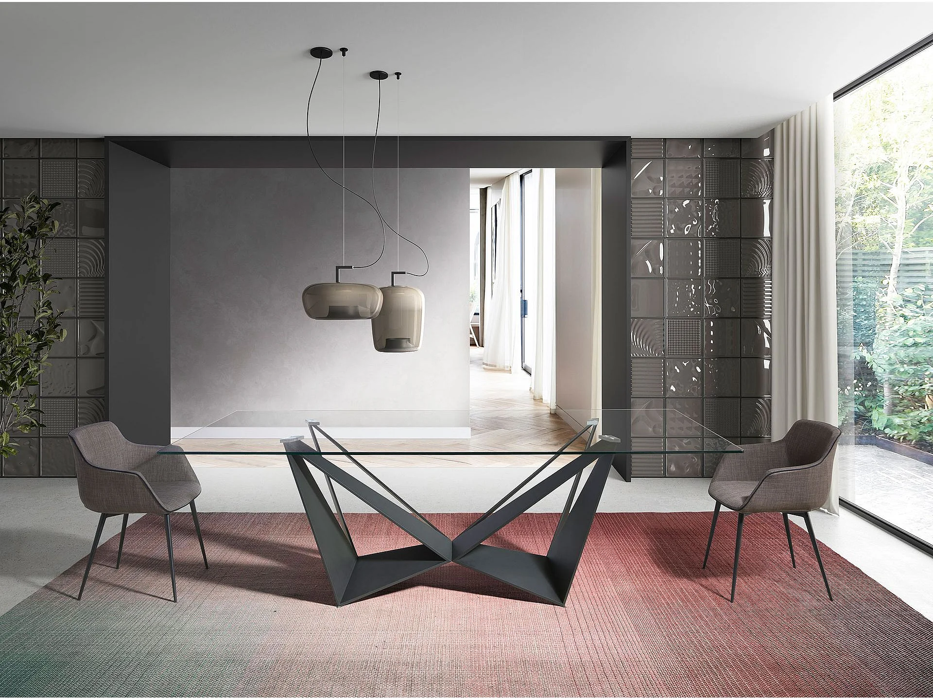 Table à manger rectangulaire verre trempé et acier noir 1128-200x95 ANGEL CERDA