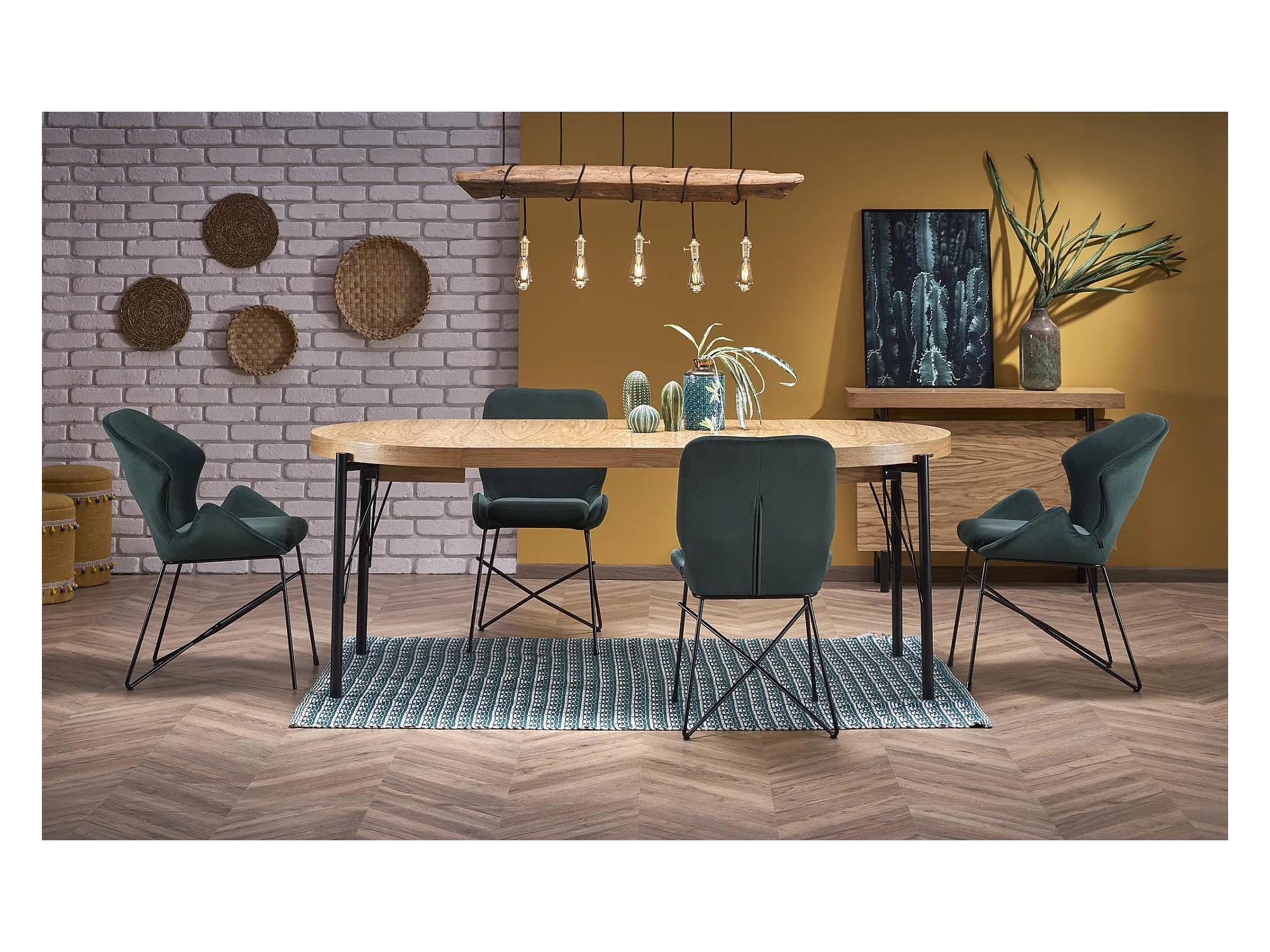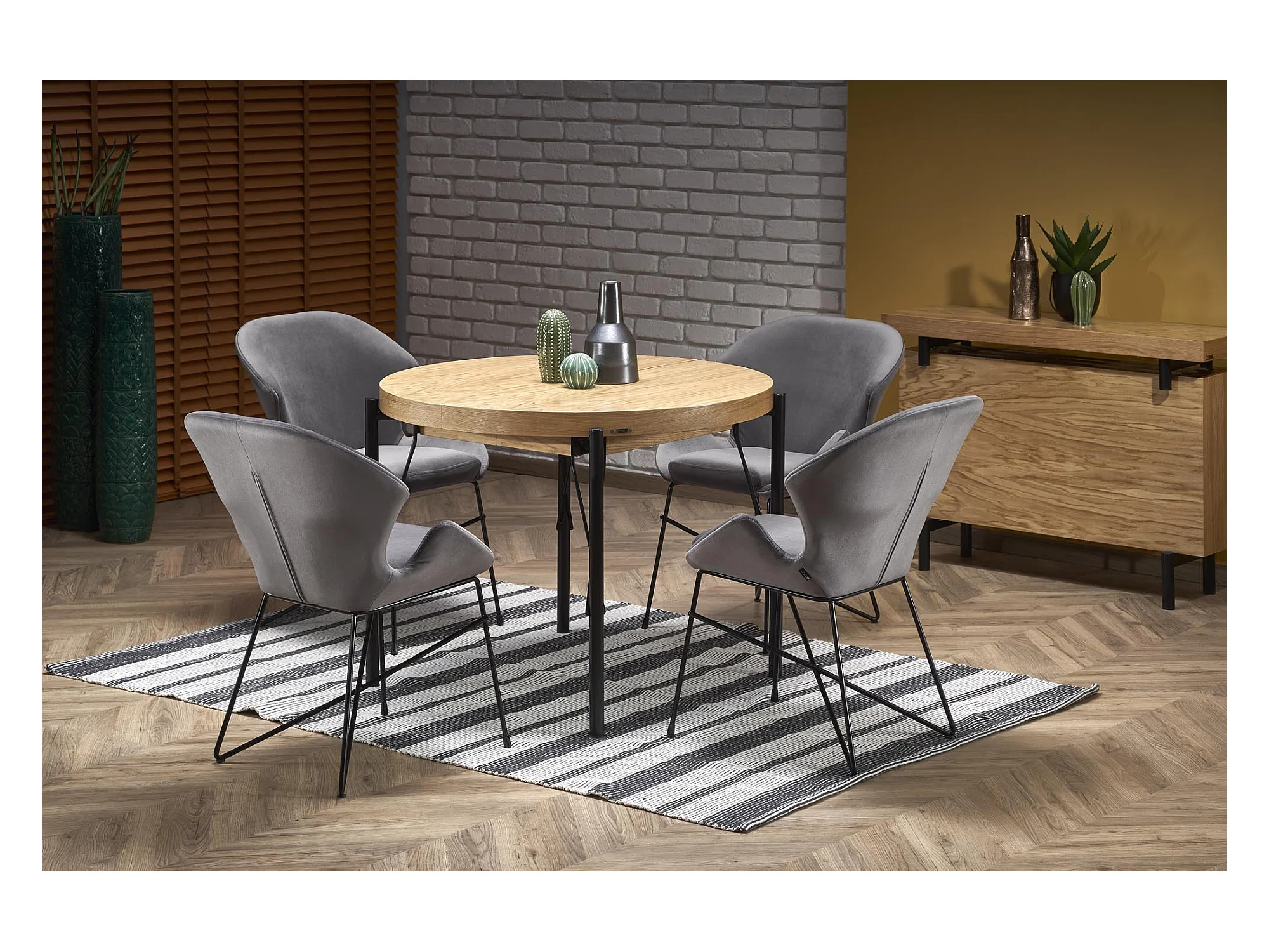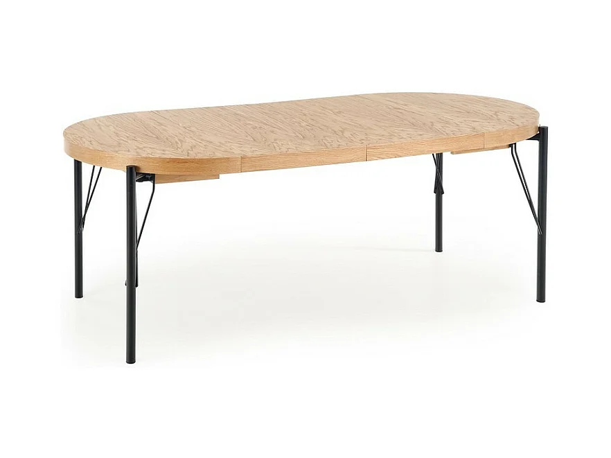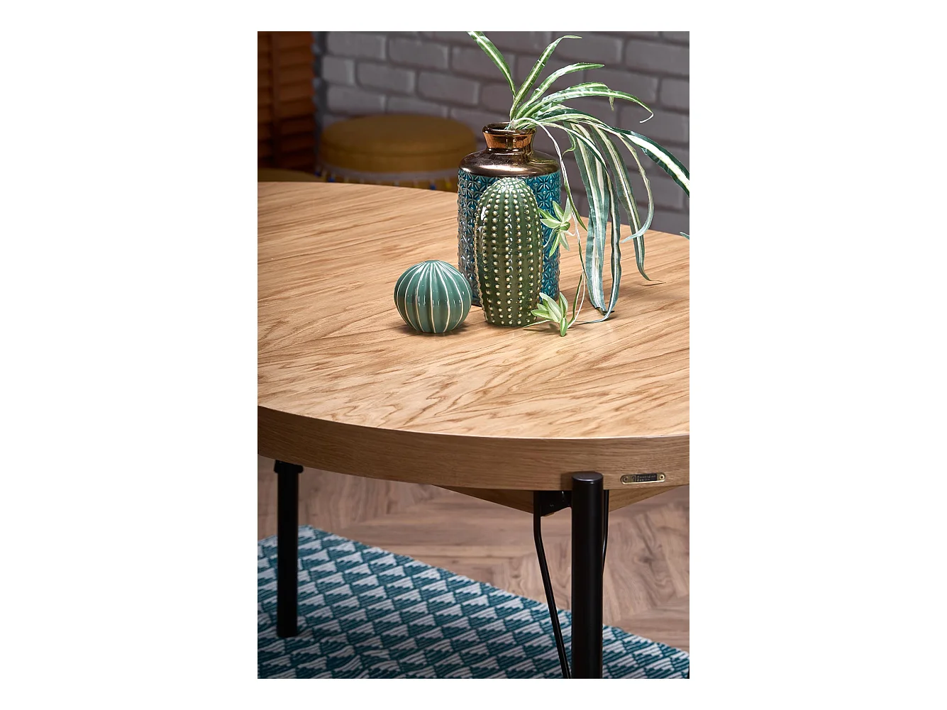 Table à manger ronde 100-300cm extensible avec plateau plaqué chêne et pieds métal AYA