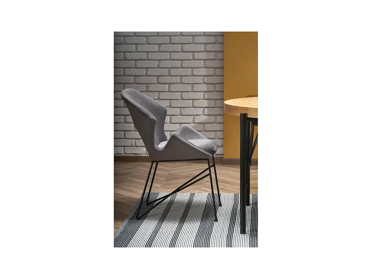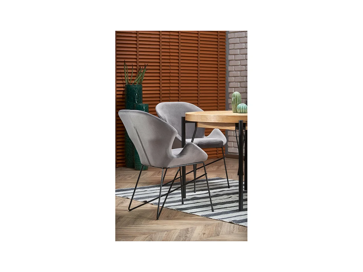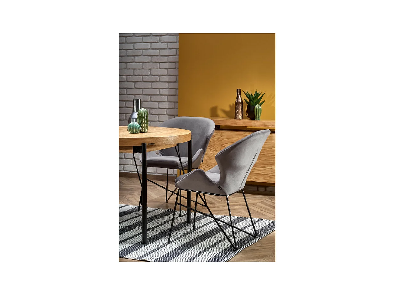 Table à manger ronde 100-300cm extensible avec plateau plaqué chêne et pieds métal AYA