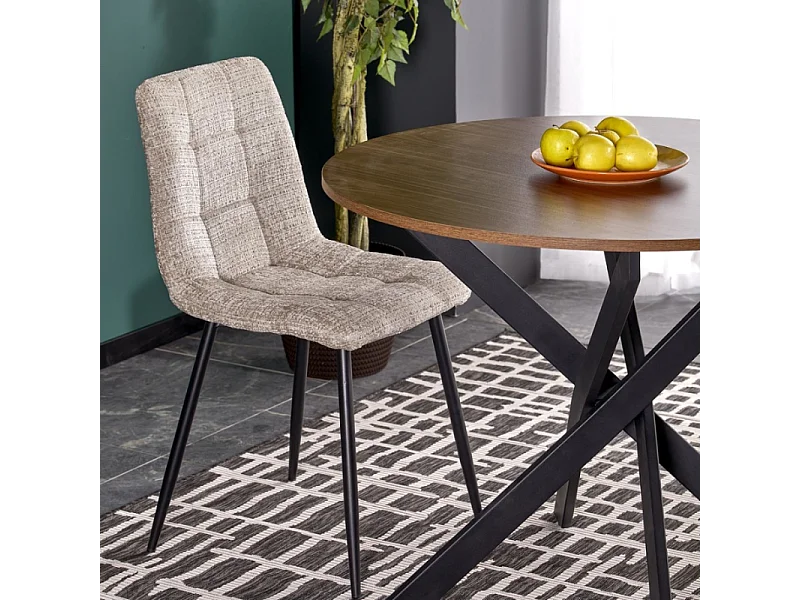 Table à manger ronde 100 cm plateau noix et pieds noir EDGAR