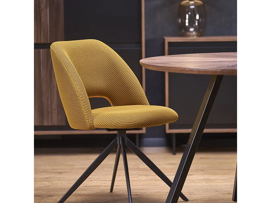 Table à manger ronde 120 cm plateau noyer et pieds noir DANILO