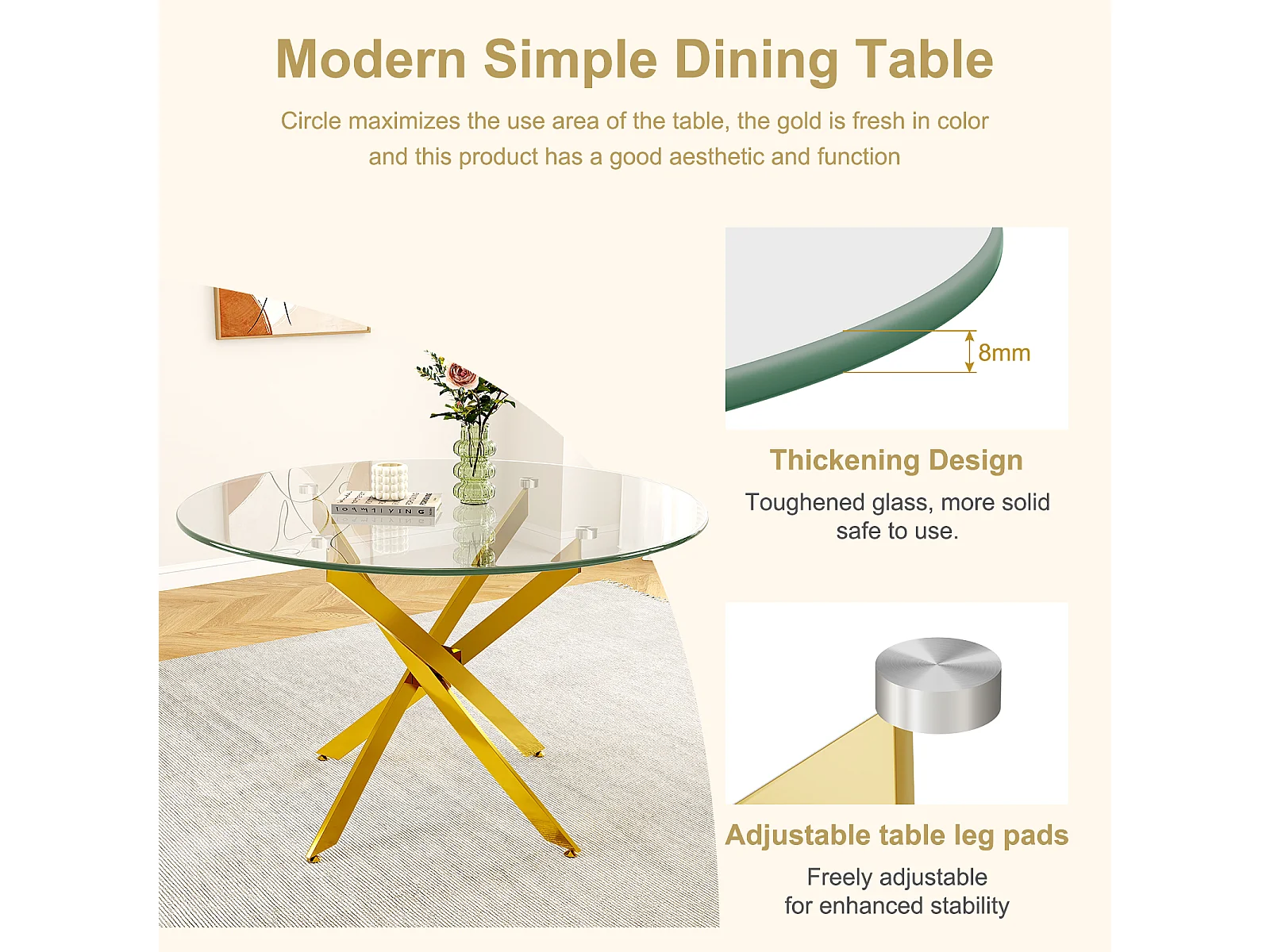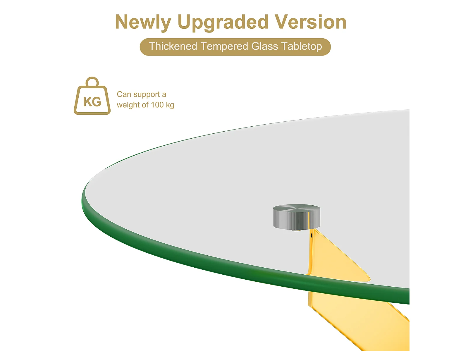 Table à manger ronde 2 à 4 personnes en verre trempé et métal doré - charge max 100kg - Transparent - 90x90x75cm