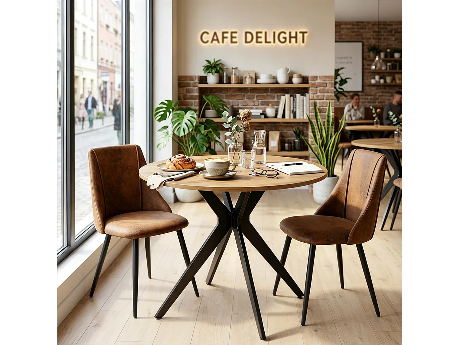 Table à manger ronde 4 à 6 personnes style industriel plateau imitation chêne, CLIFTX