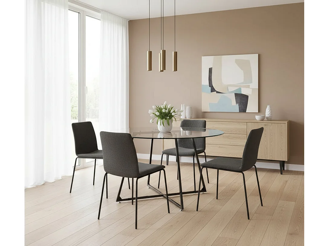 Table à Manger Ronde Verre Transparent Pieds Métal Noir D120x75cm - HELOISE