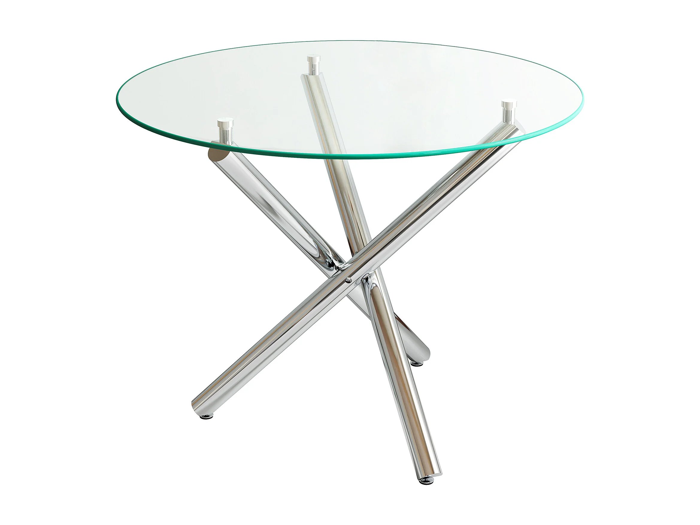 Table à manger ronde 80 × 80 cm avec plateau en verre trempé et pieds argenté