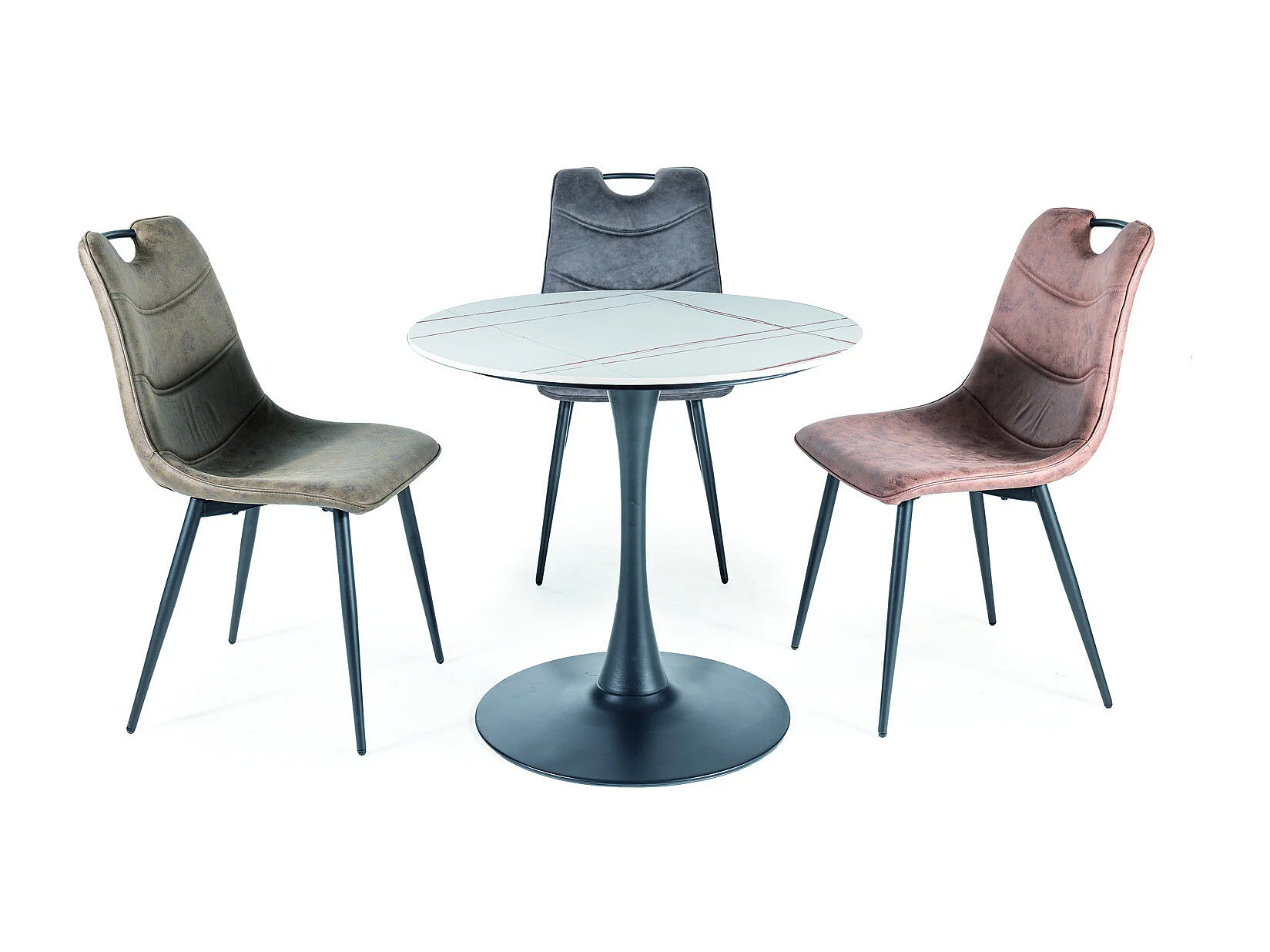 Table à manger ronde 80cm céramique aspect marbre blanc Sasha