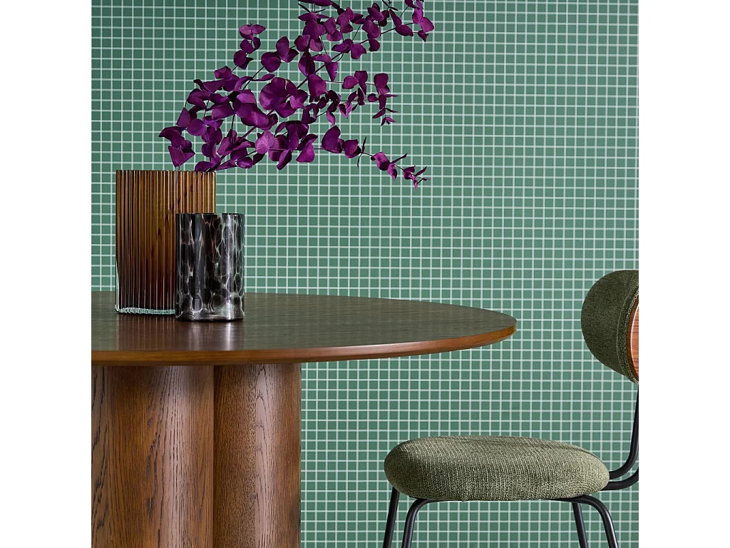 Table à manger ronde bois d'hévéa et placage chêne noyer 4 places 130cm - Leonore