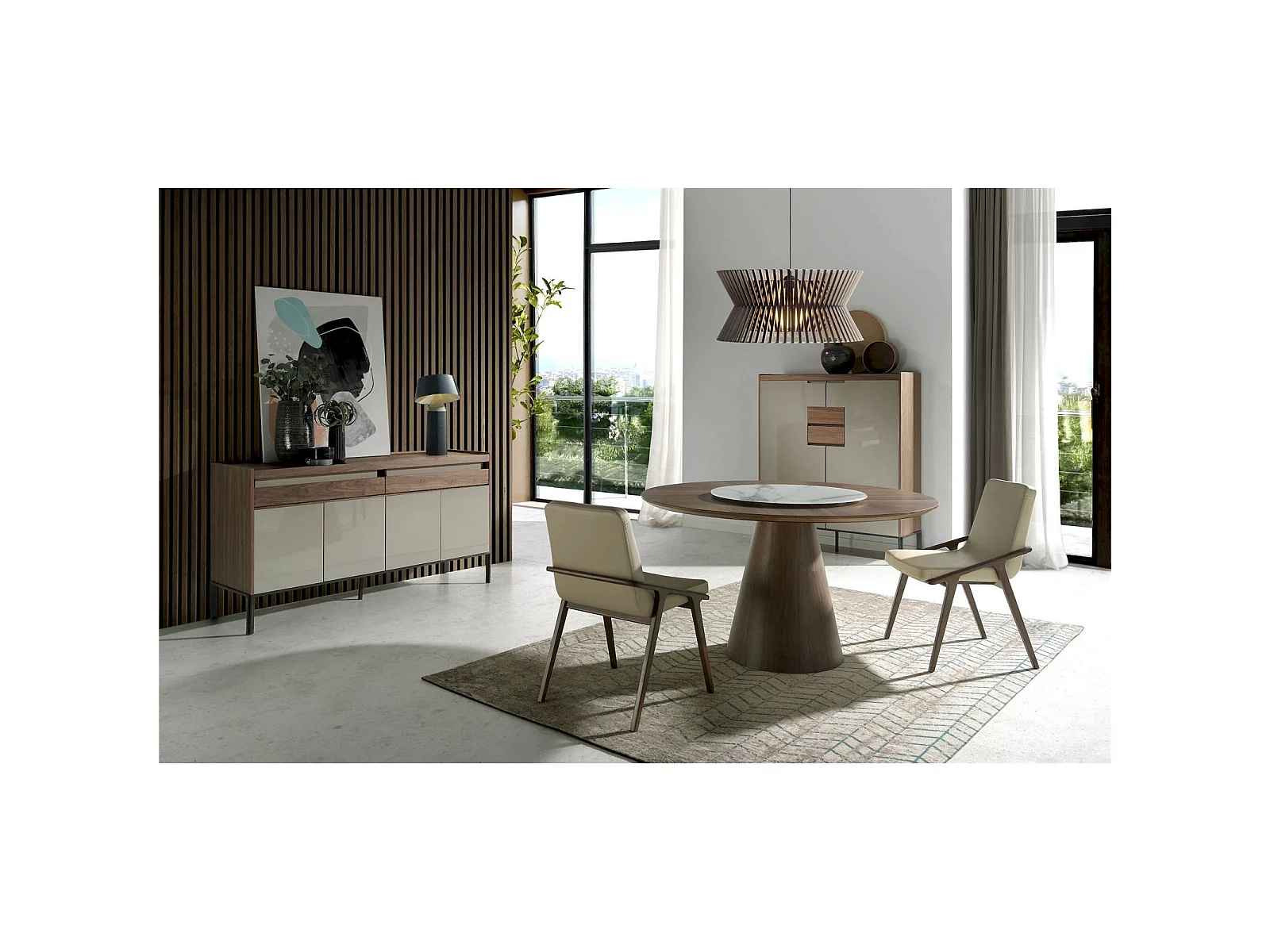 Table a manger ronde bois massif Plateau pivotant centre en marbre céramique