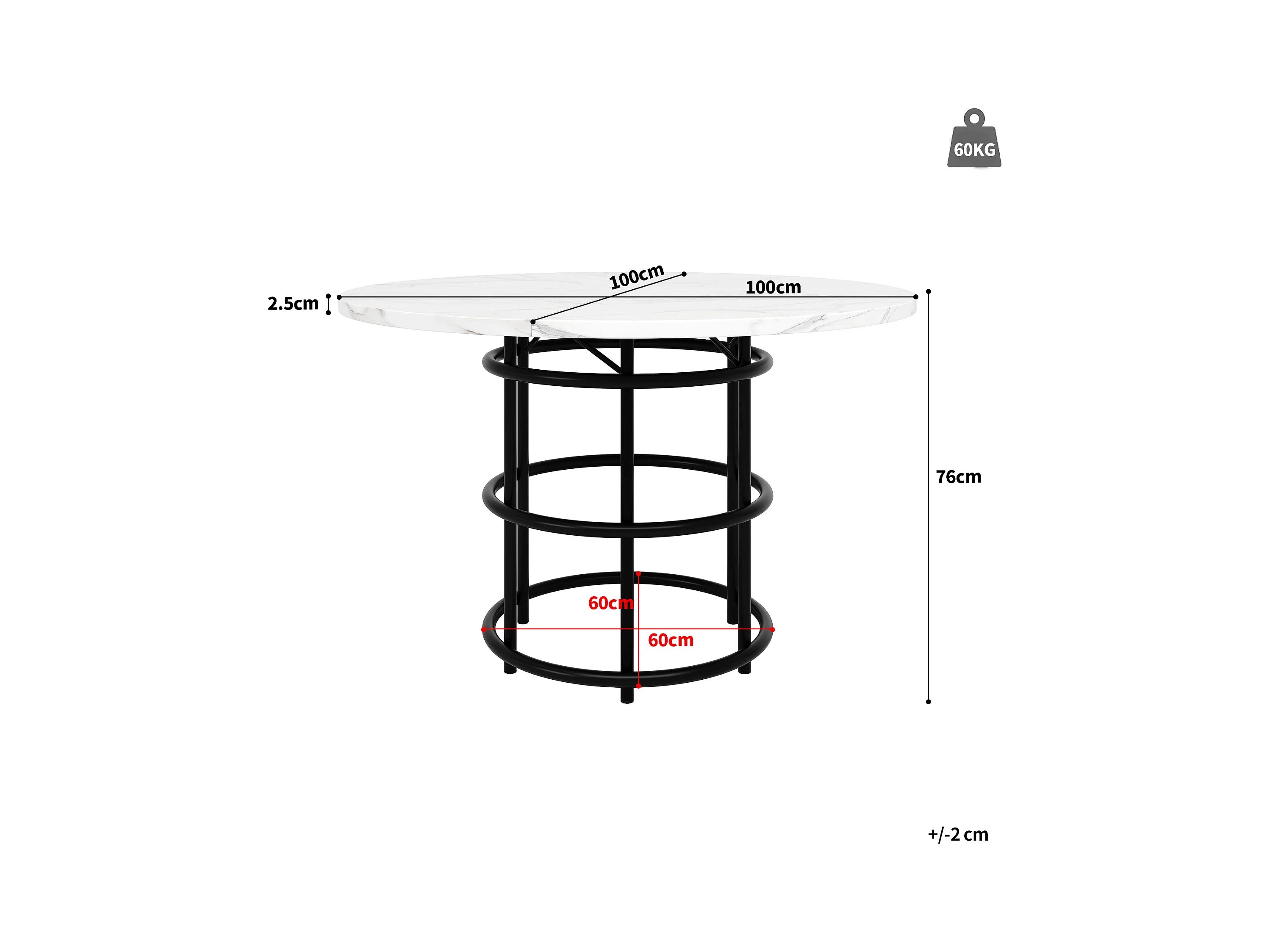 Table à manger ronde 100x100x76cm - Cadre en métal - placage à motif marbre - 2 à 6 personnes - Blanc & Noir