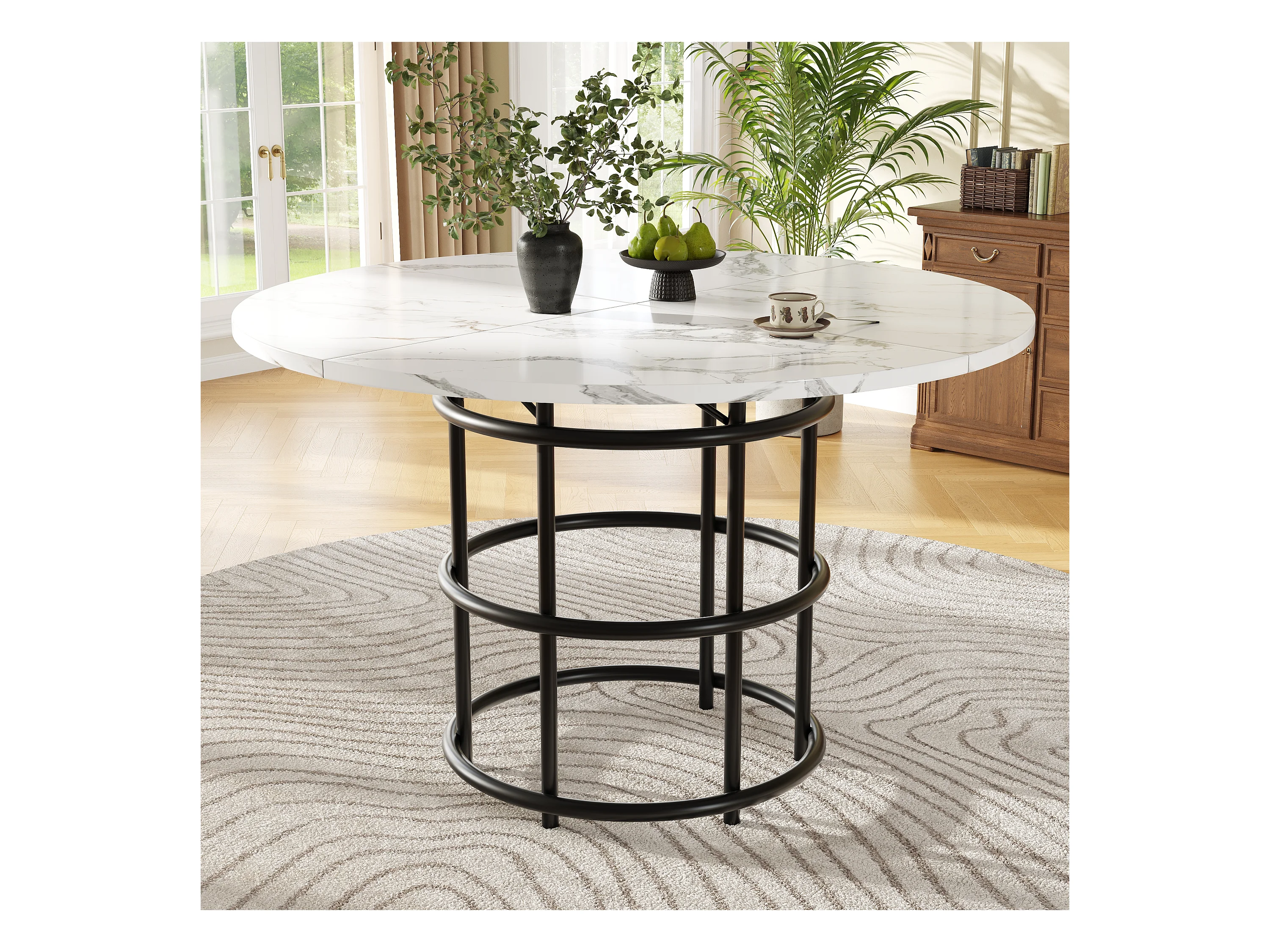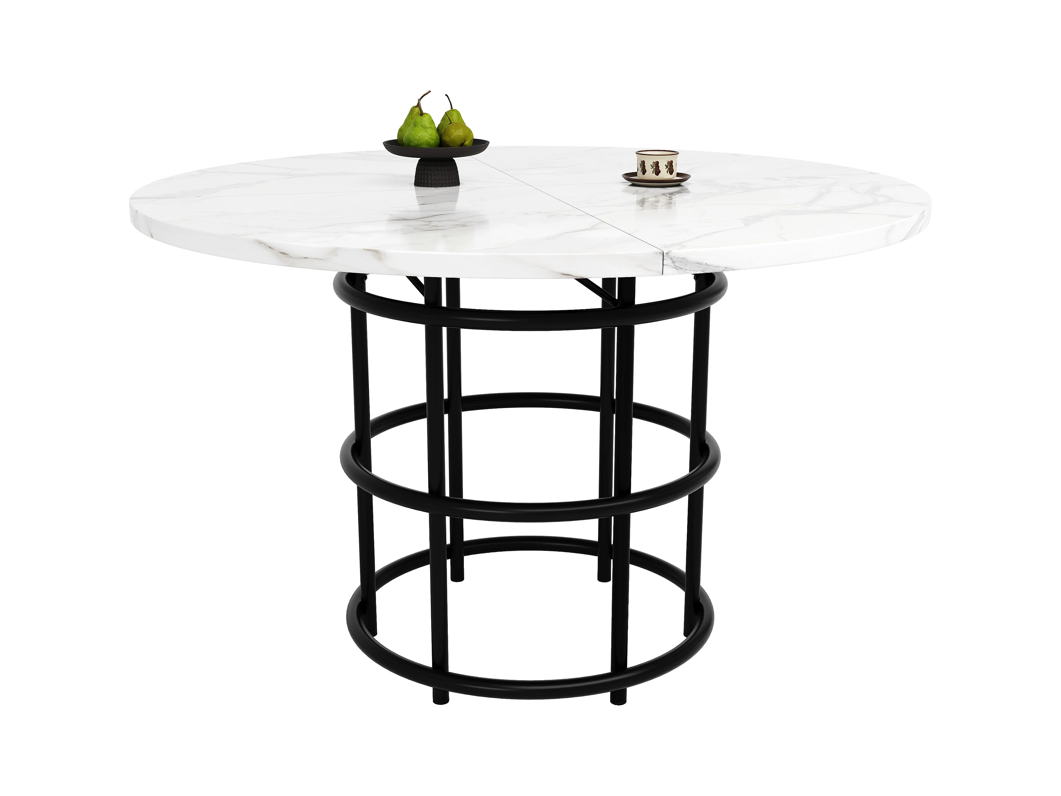 Table à manger ronde - Cadre rond en métal - placage à motif marbre - 2 à 6 personnes - Blanc & Noir