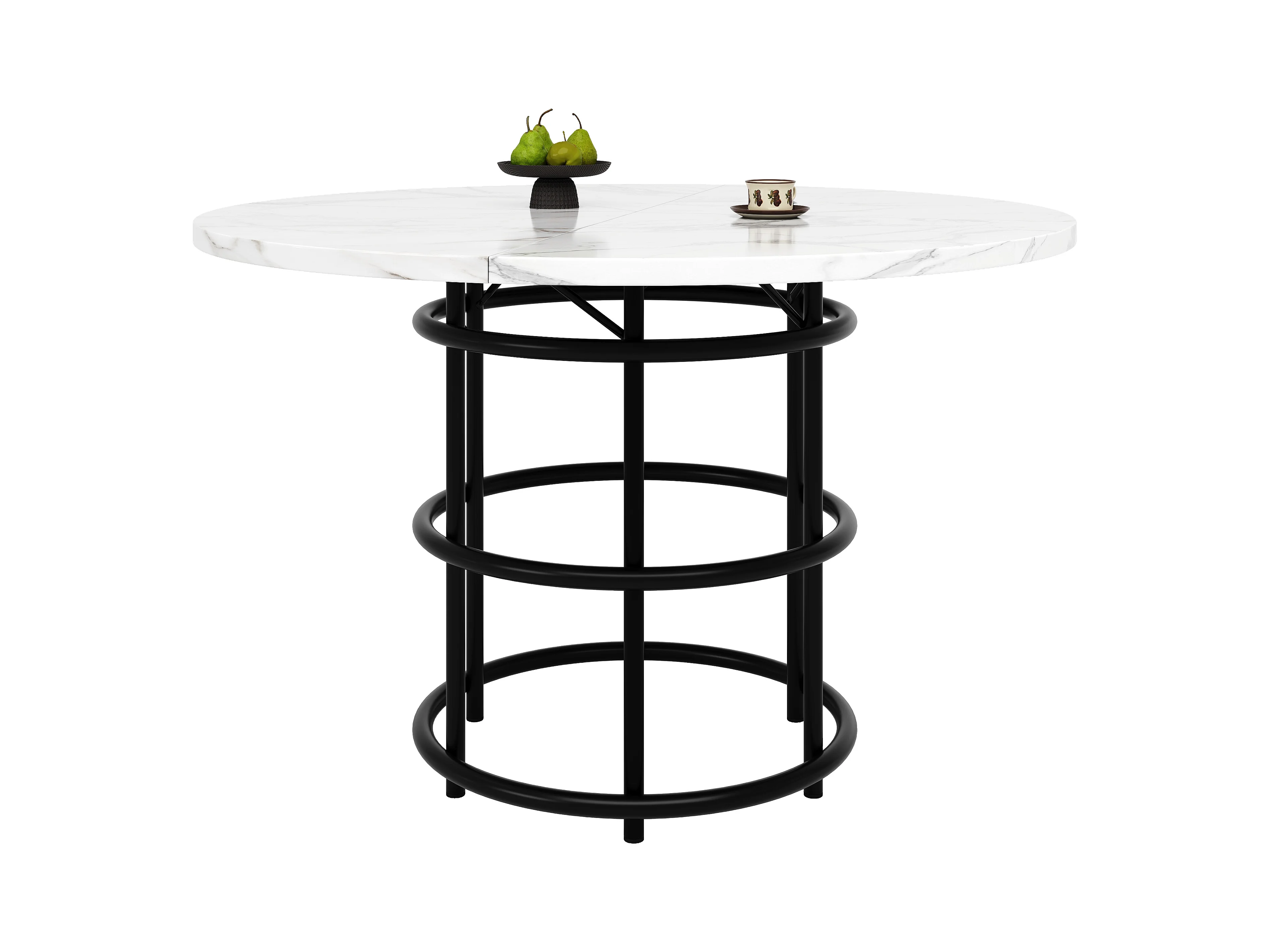 Table à manger ronde 80x80x76cm - Cadre en métal - placage à motif marbre - 2 à 6 personnes - Blanc & Noir