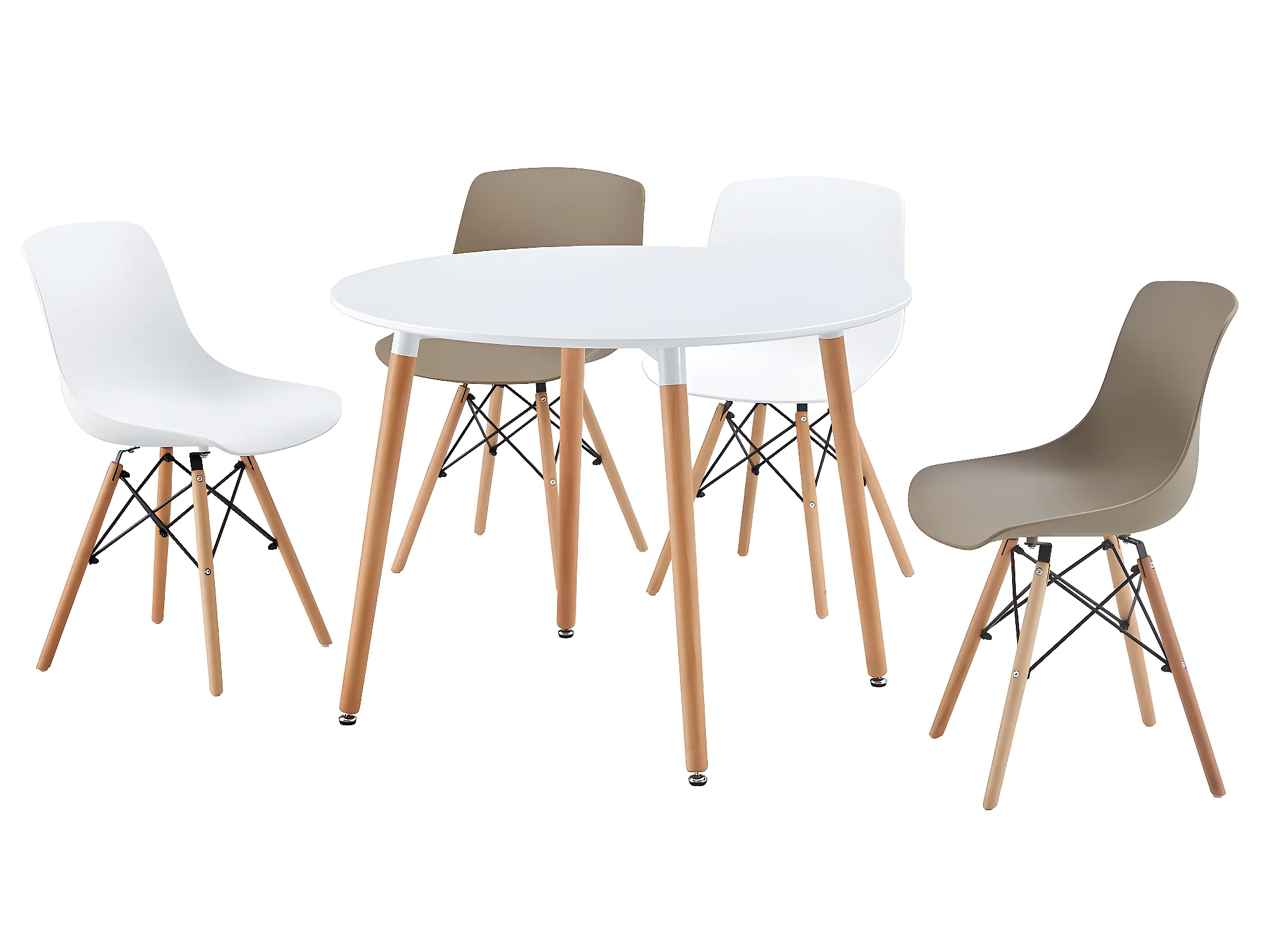 Table à manger ronde coloris blanc mat, pieds coloris hêtre