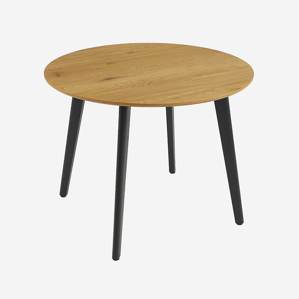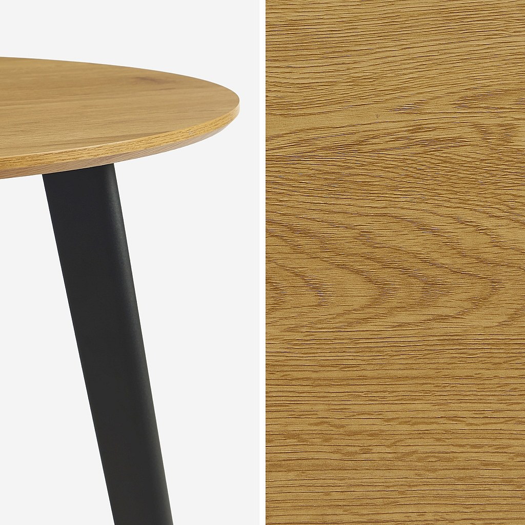 Table à manger ronde effet chêne pieds métal noir 4 places