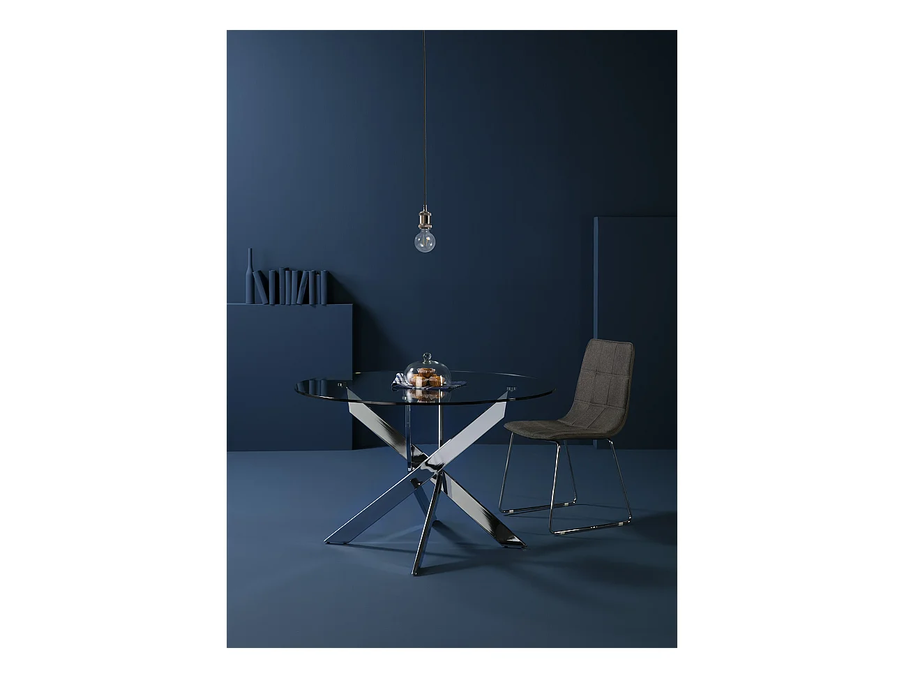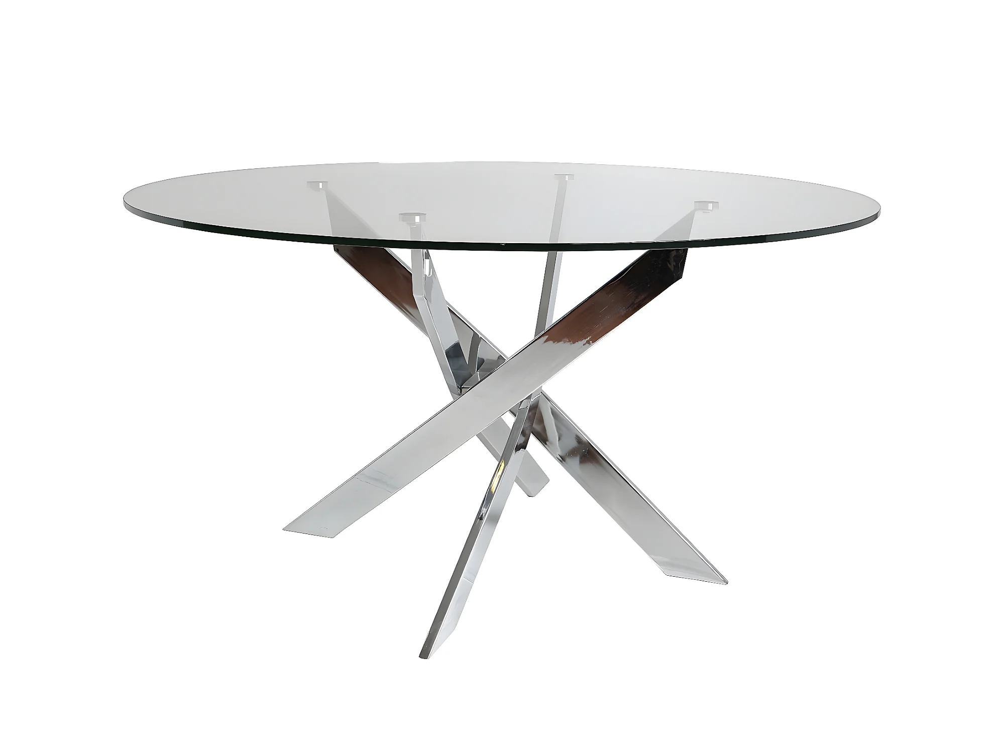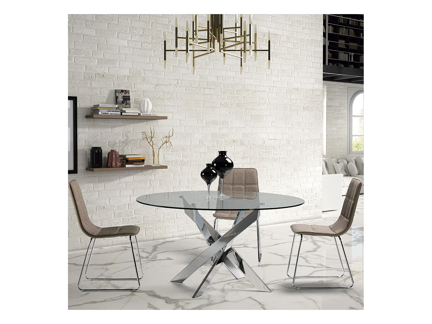 Table à manger ronde en verre trempé avec pieds en métal chromé - Diamètre 140 x Hauteur 76 cm