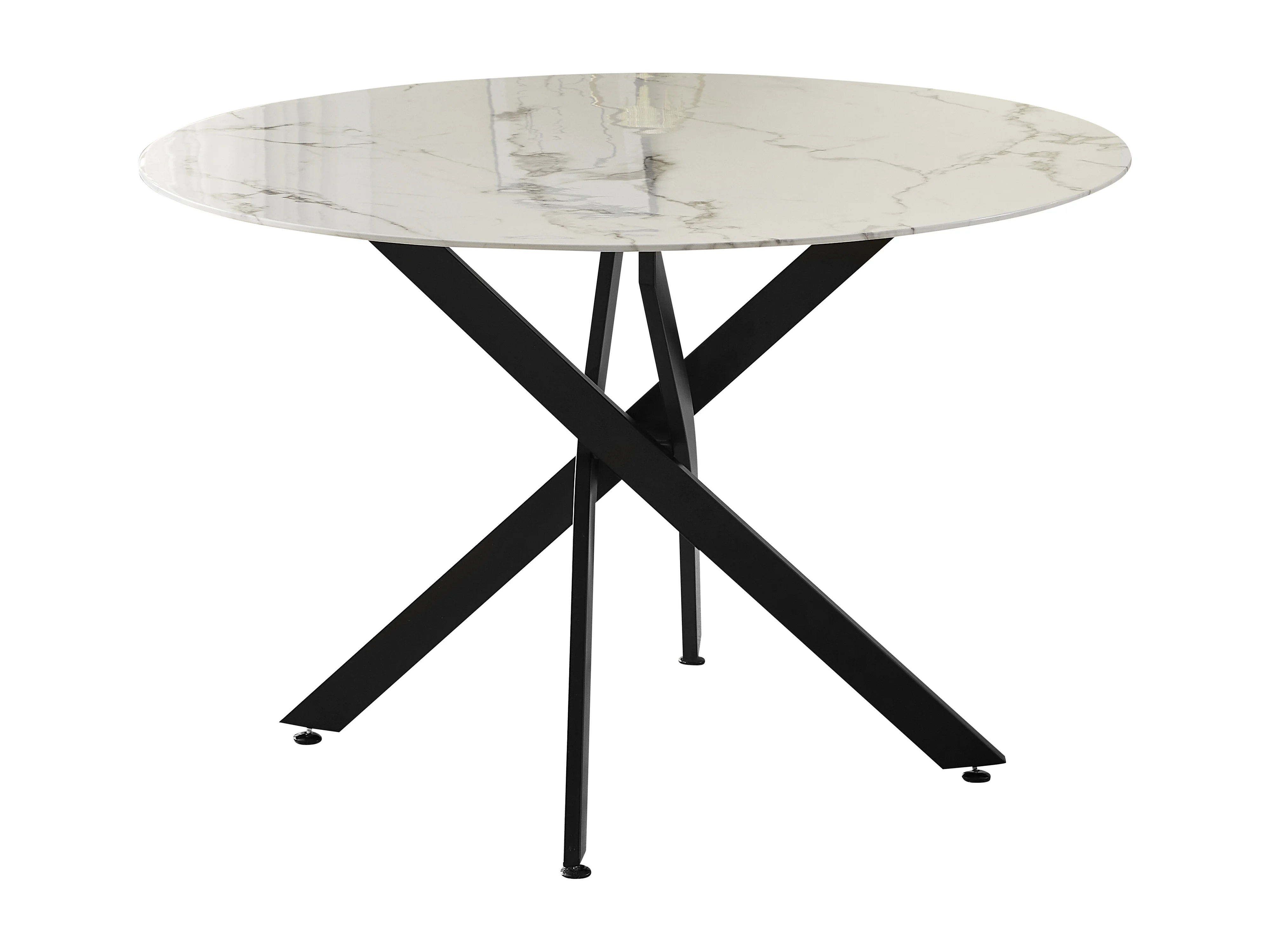Table à manger ronde en verre trempé - Effet marbre blanc et métal noir – 4 personnes – CHIARA