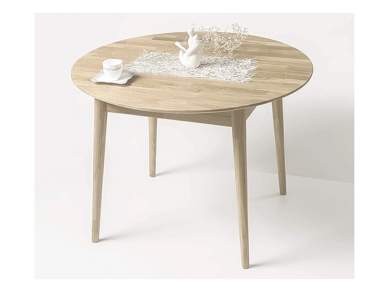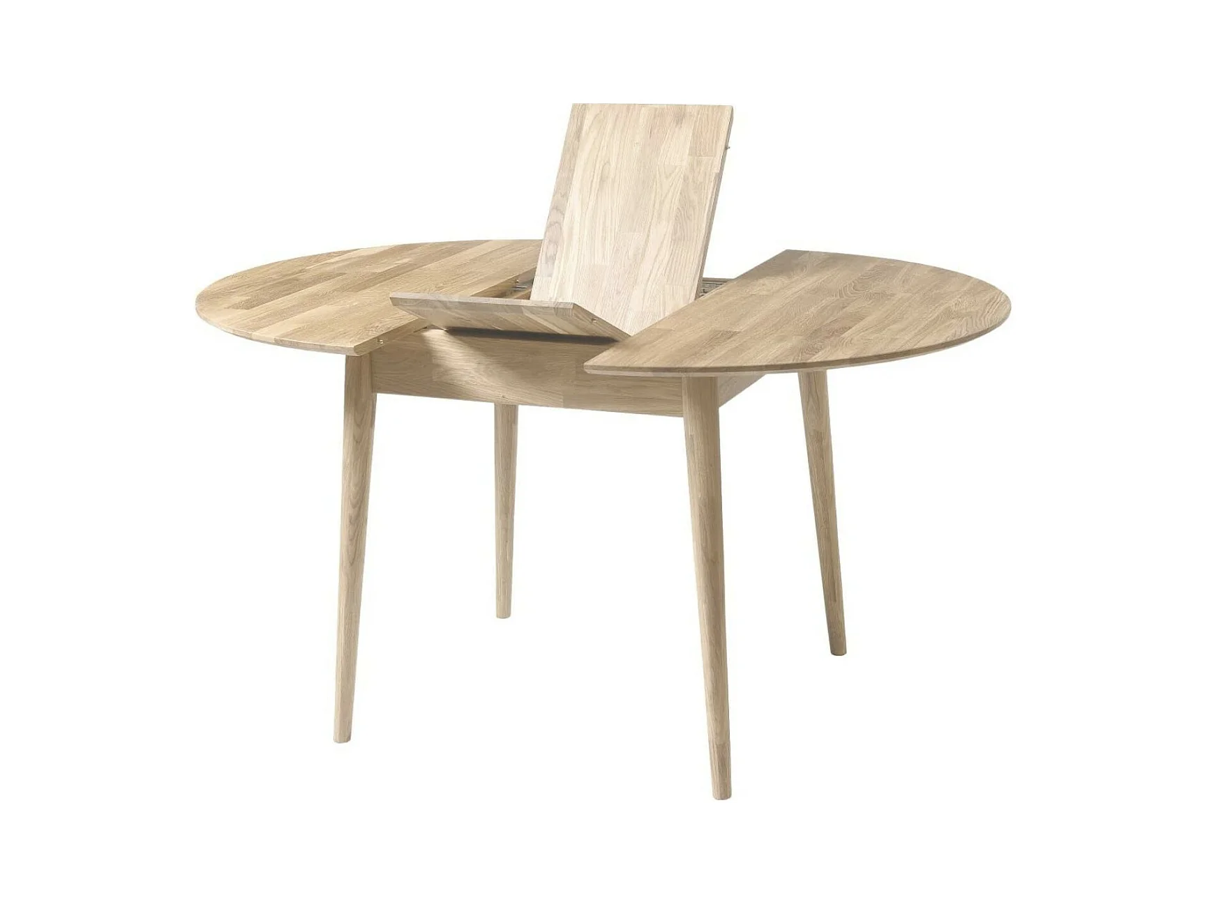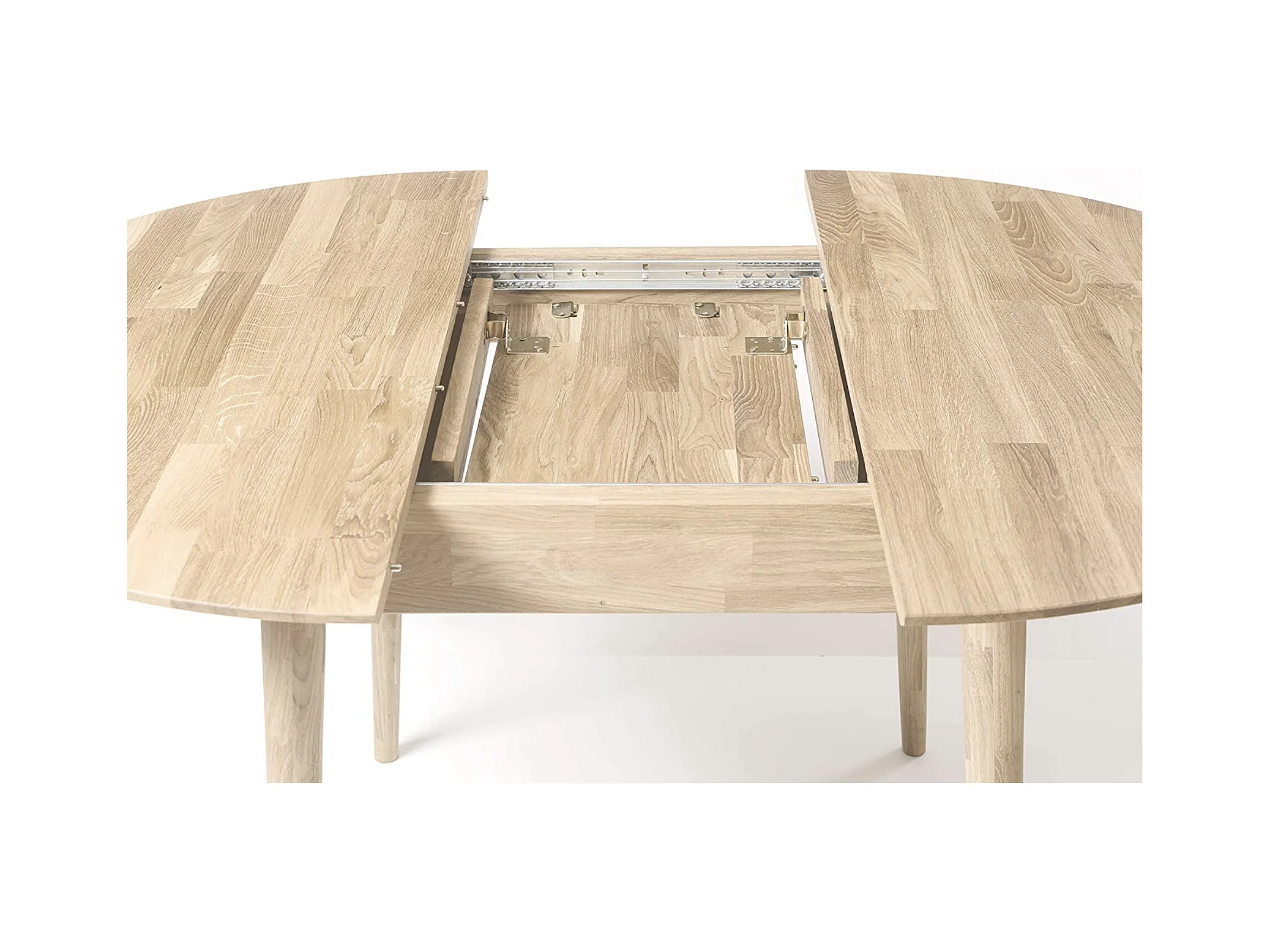 Table à manger ronde extensible 110 à 145cm en chêne massif blanchi Kundy
