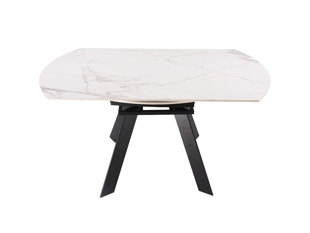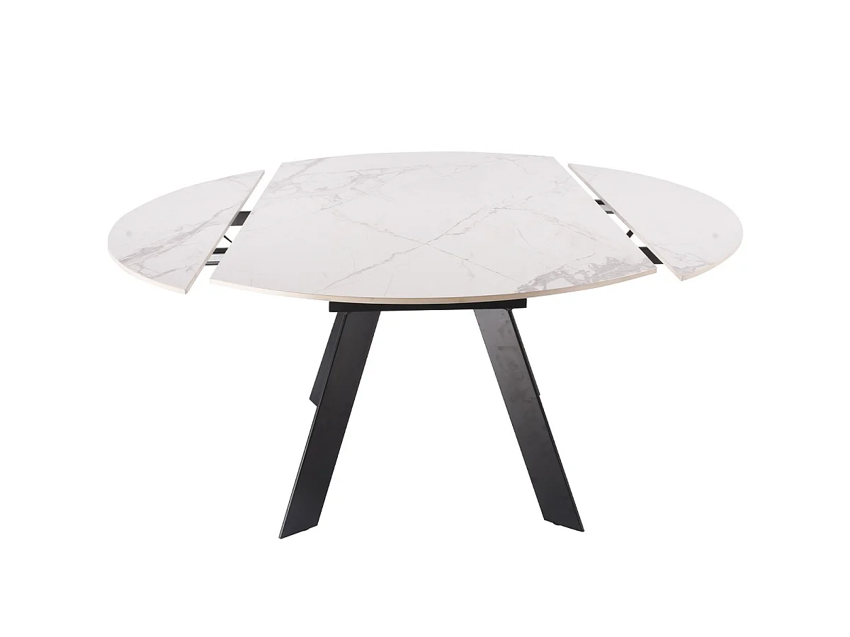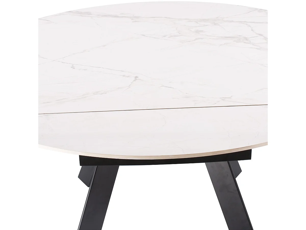 Table à manger ronde extensible 3/6 pers. en céramique effet Marbre gris Pandora et piètement noir 90/150x90 cm - Circe