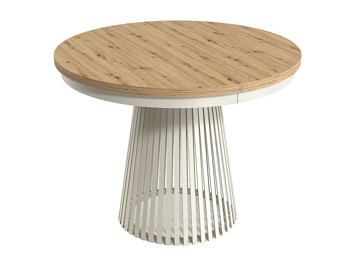 Table à Manger Ronde Extensible avec Lamelles Style Loft – 100 à 180 cm – Design Industriel avec Pieds en Métal Beige Cachemire – Gain de Place – Chêne Marron Clair