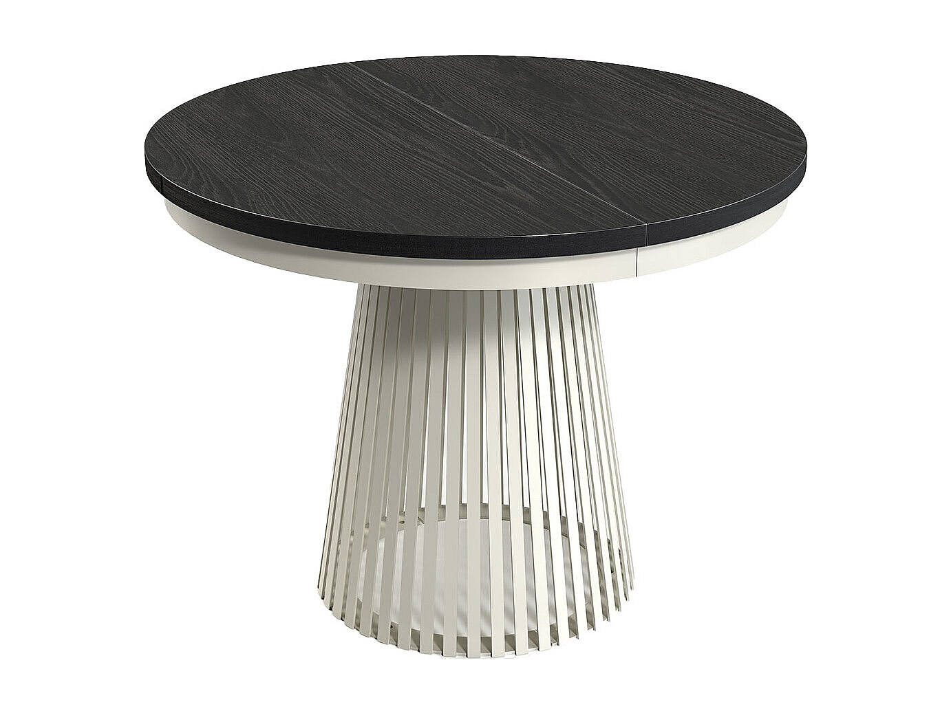 Table à Manger Ronde Extensible avec Lamelles Style Loft – 100 à 180 cm – Design Industriel avec Pieds en Métal Beige Cachemire – Gain de Place – Noir