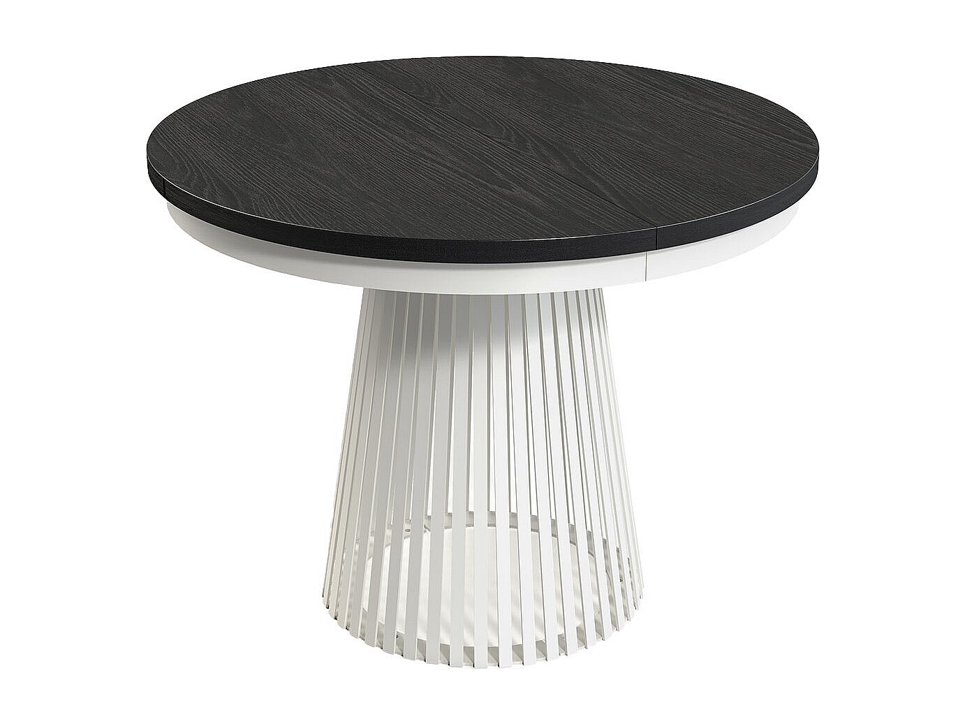 Table à Manger Ronde Extensible avec Lamelles Style Loft – 100 à 180 cm – Design Industriel avec Pieds en Métal Blanc – Gain de Place – Noir