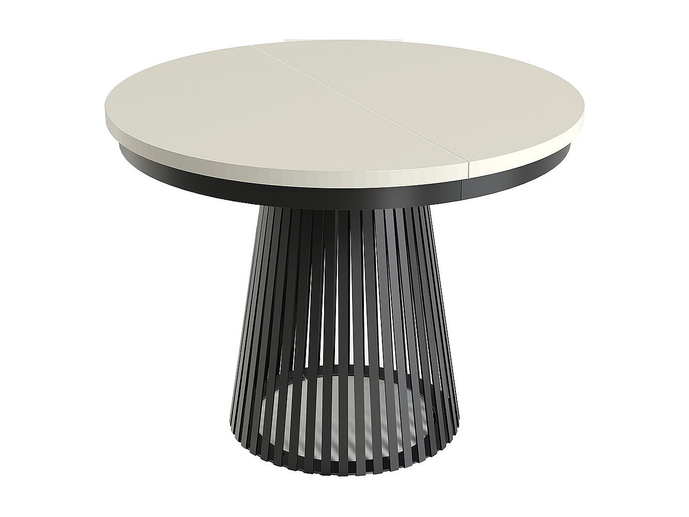 Table à Manger Ronde Extensible avec Lamelles Style Loft – 100 à 180 cm – Design Industriel avec Pieds en Métal Noir – Gain de Place – Beige Cachemire