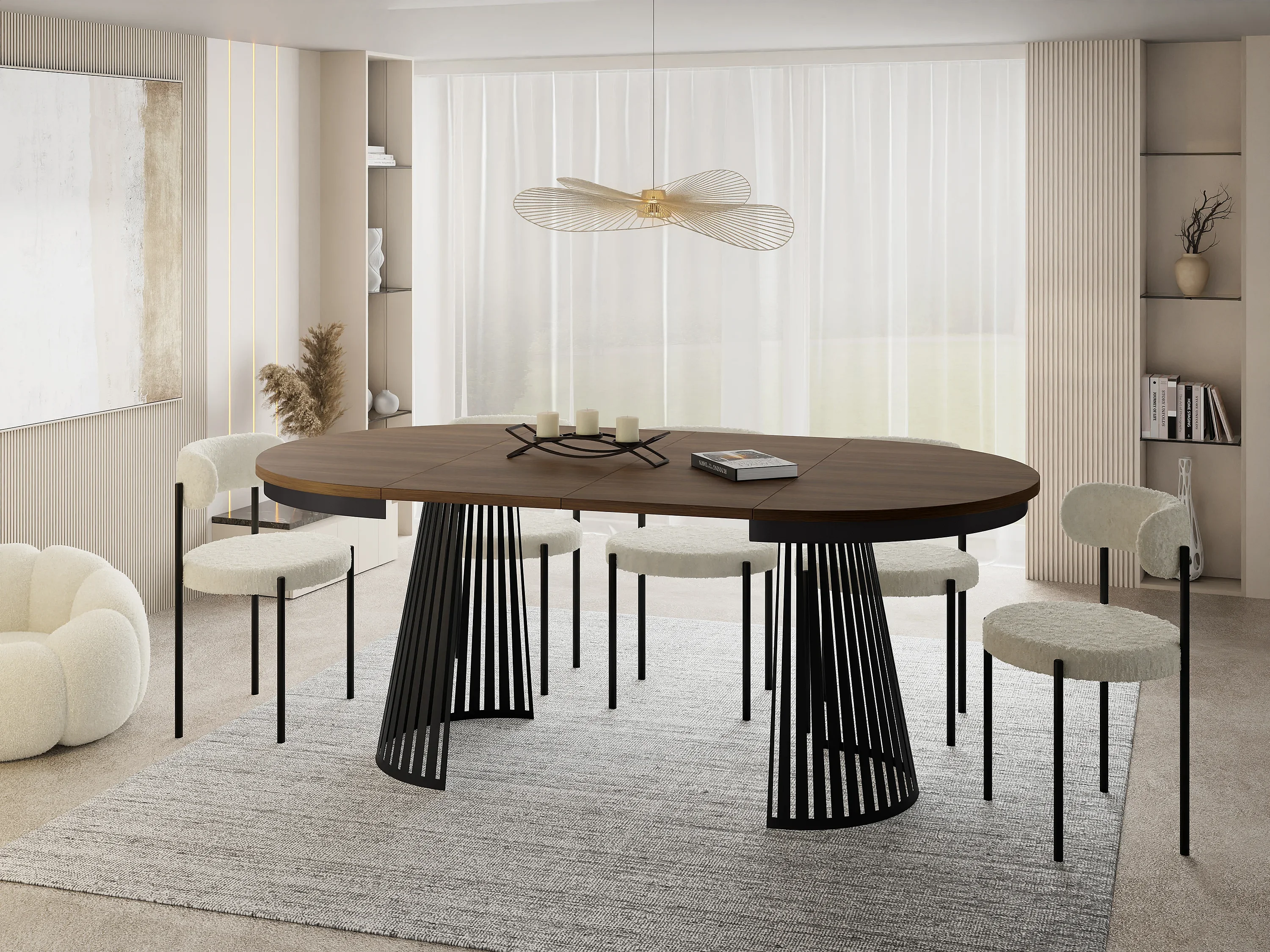 Table à Manger Ronde Extensible avec Lamelles Style Loft 100 cm – Design Industriel avec Pieds en Métal Noir, Gain de Place pour Salon – Marron Noyer