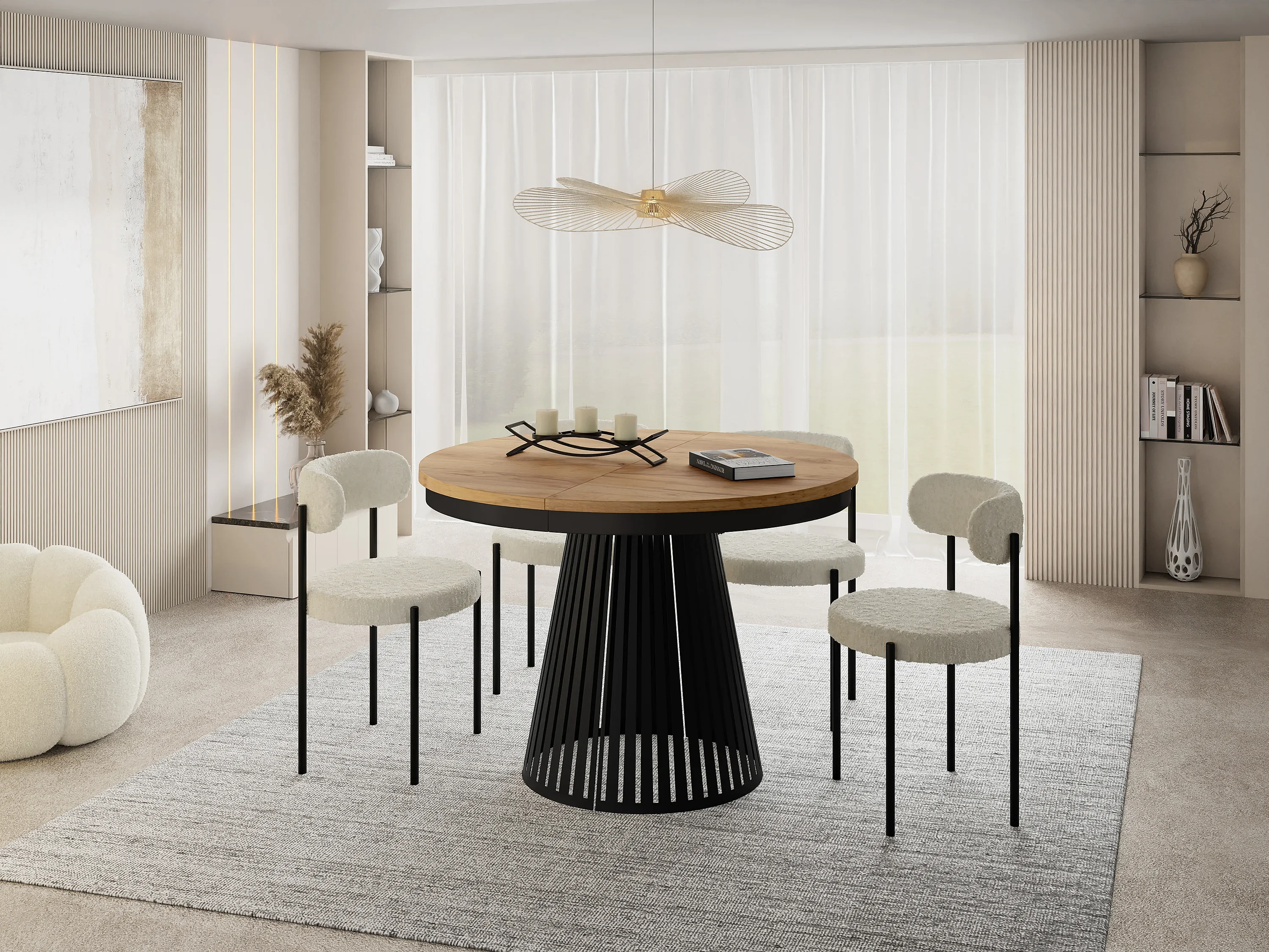 Table à Manger Ronde Extensible avec Lamelles Style Loft 100 cm – Design Industriel avec Pieds en Métal Noir, Gain de Place pour Salon, Salle à Manger – Marron