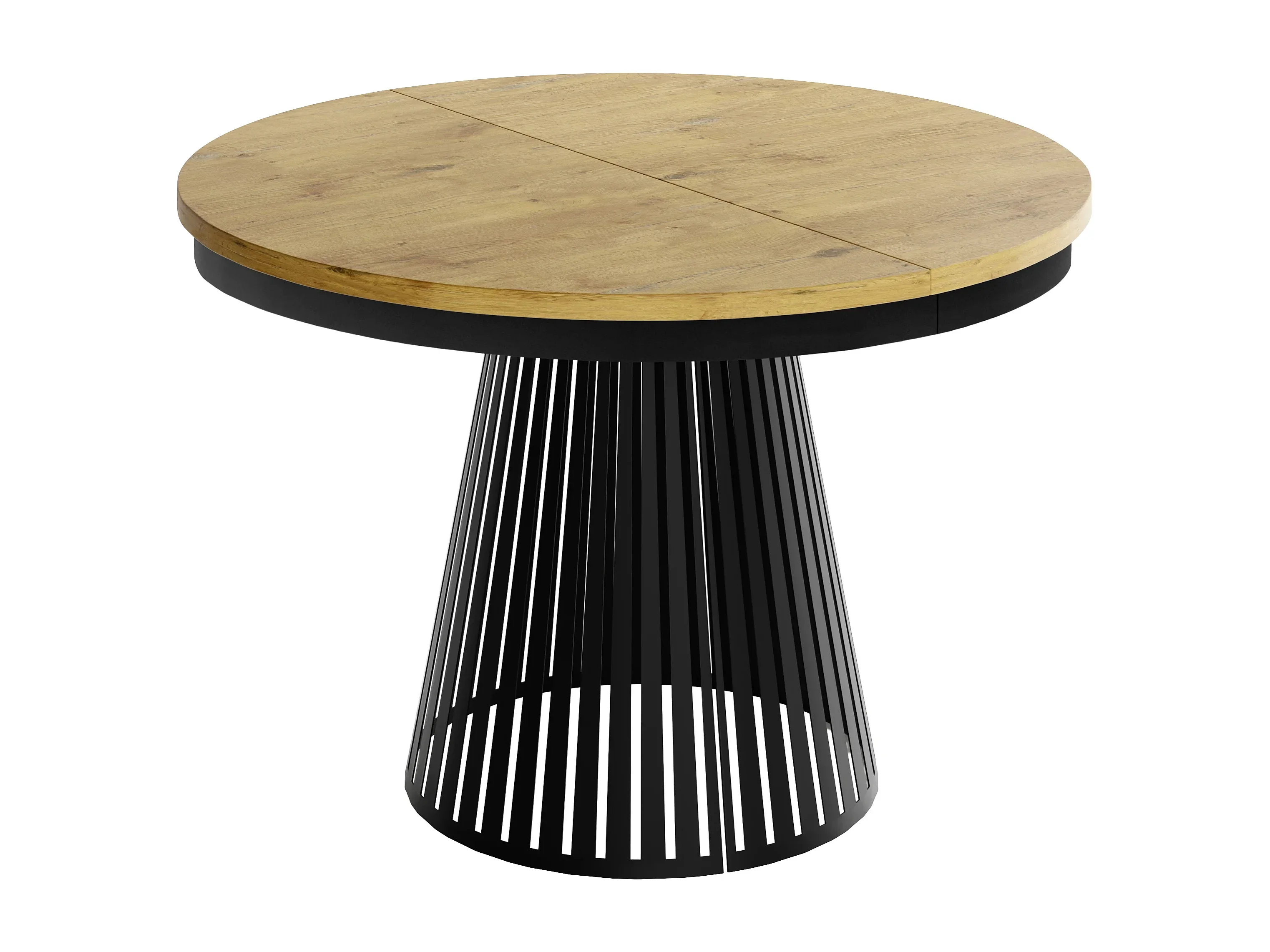 Table à Manger Ronde Extensible avec Lamelles Style Loft 100 cm – Design Industriel avec Pieds en Métal Noir, Gain de Place pour Salon, Salle à Manger – Marron