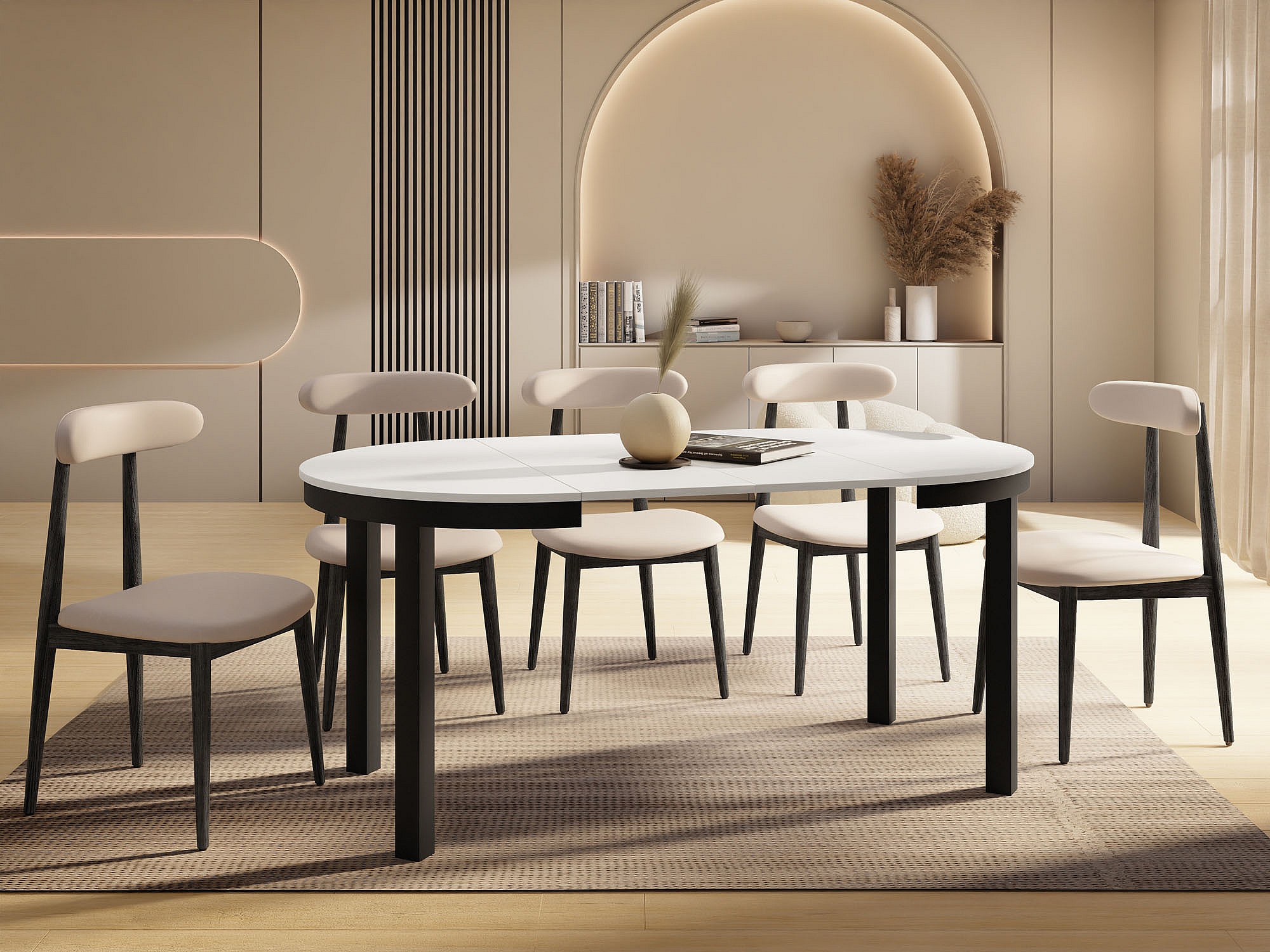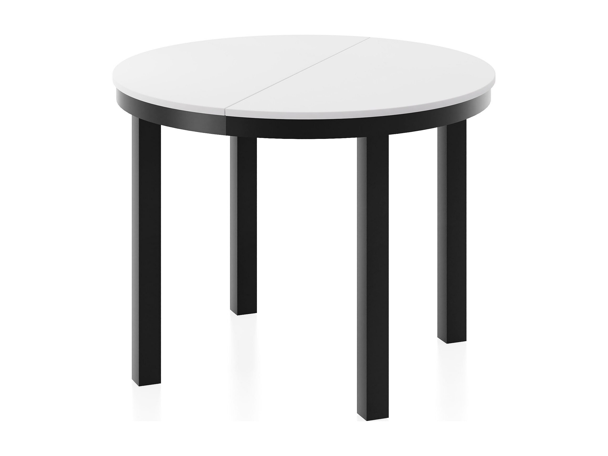 Table à Manger Ronde Extensible avec Pieds Métalliques Noirs – Table Industrielle – Table Gain de Place pour Salon ou Cuisine – 100 cm à 180 cm – Blanc