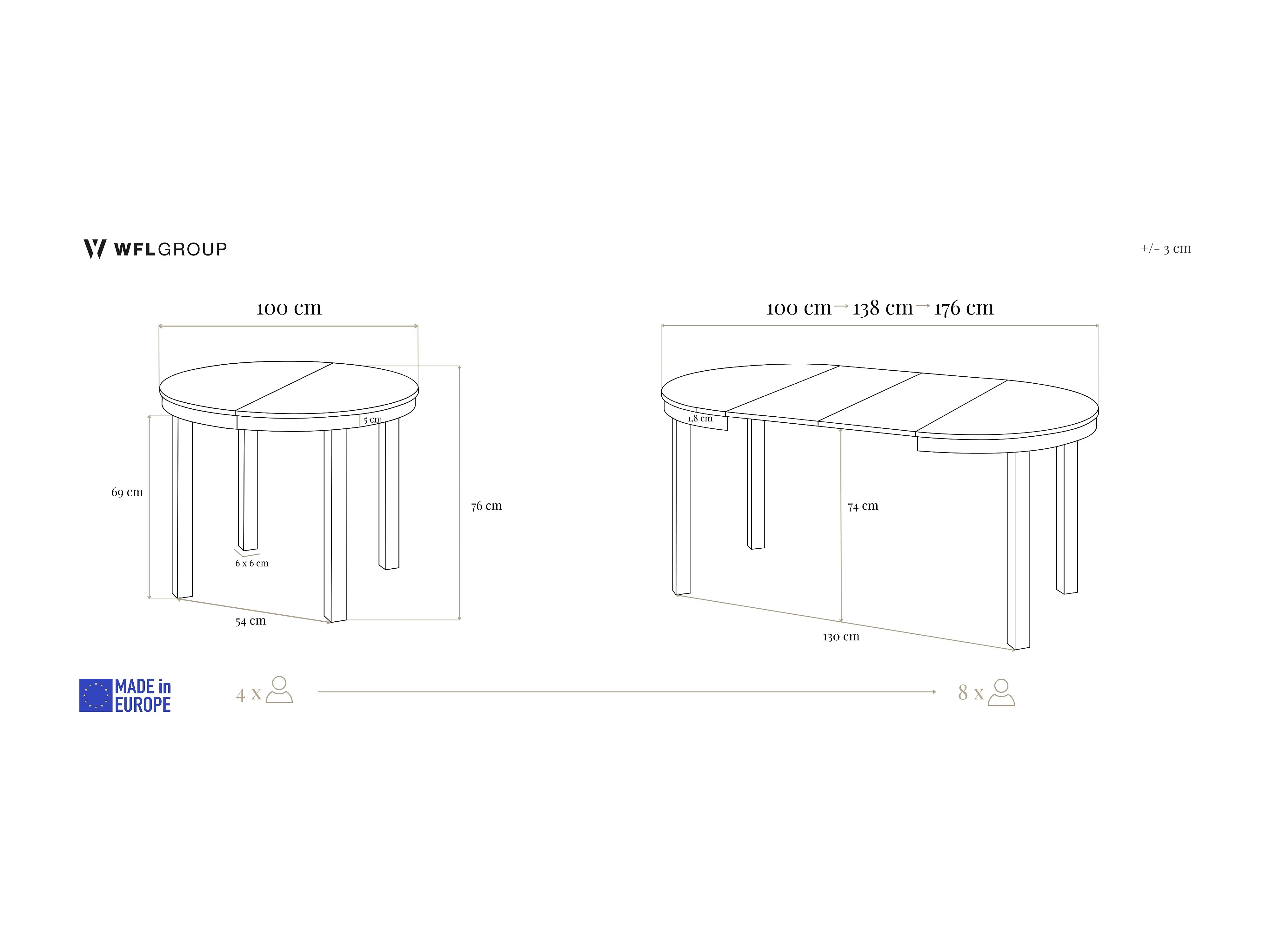 Table à Manger Ronde Extensible avec Pieds Métalliques Noirs – Table Industrielle – Table Gain de Place pour Salon ou Cuisine – 100 cm à 180 cm – Chêne Craft