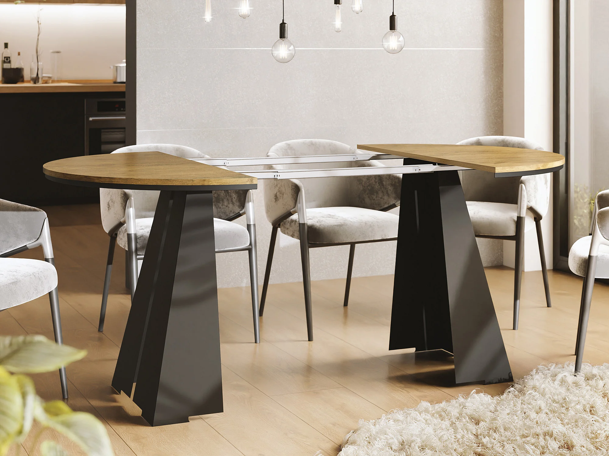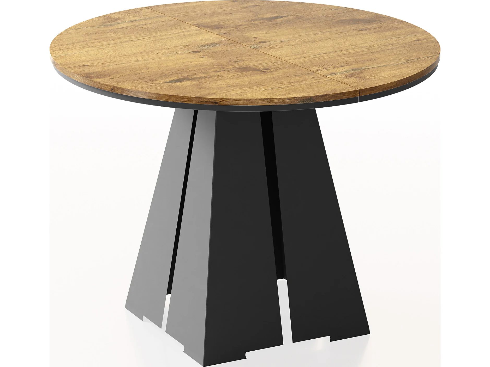 Table à Manger Ronde Extensible avec Piètement Métallique Noir - Table Industrielle Moderne pour Salle à Manger - 100 cm à 180 cm - Fabriqué en UE - Chêne Lancelot