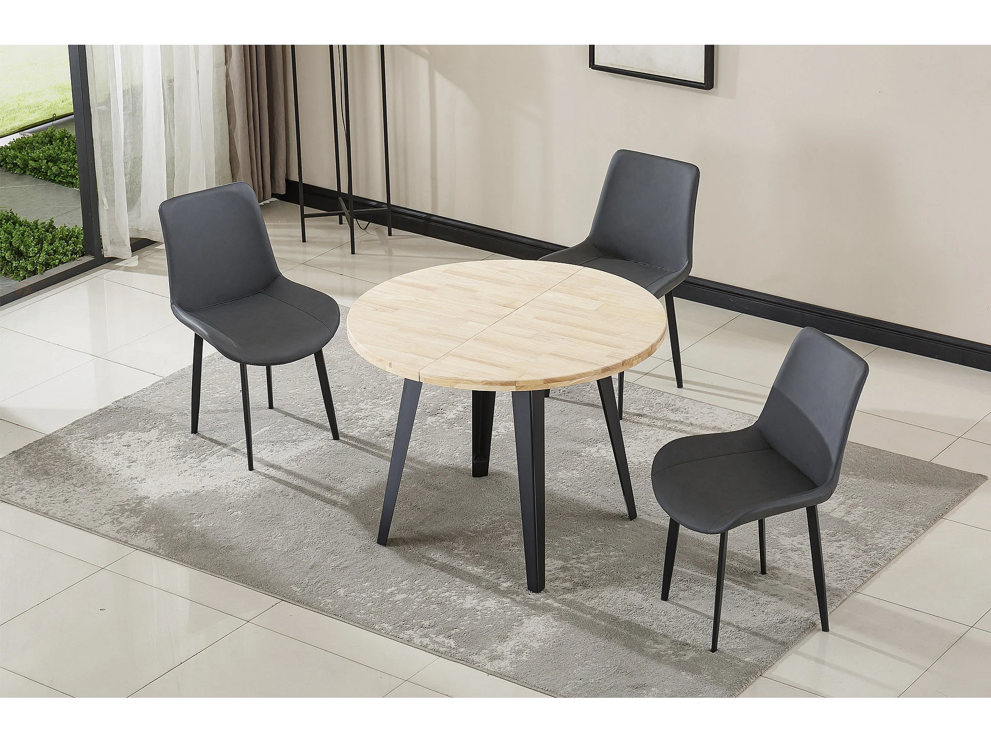 Table à manger ronde extensible coloris chêne nordique, pieds en métal noir - Longueur 100 - 140 - 180 x largeur 100 x Hauteur 76cm