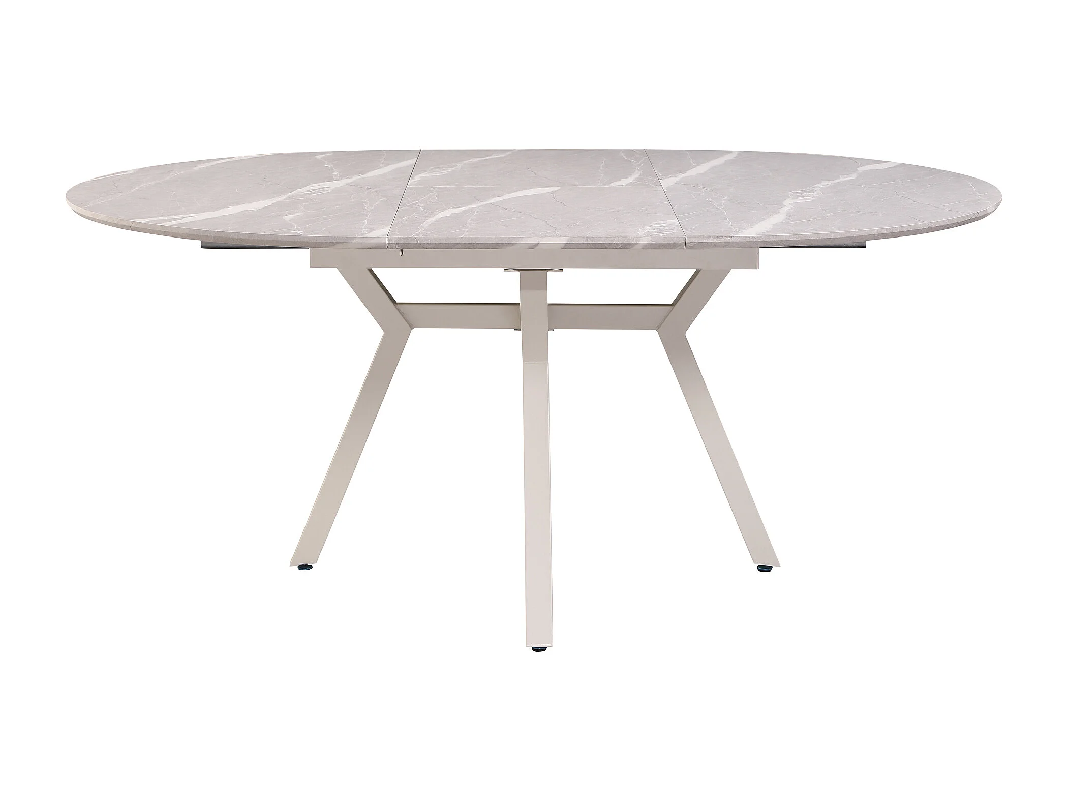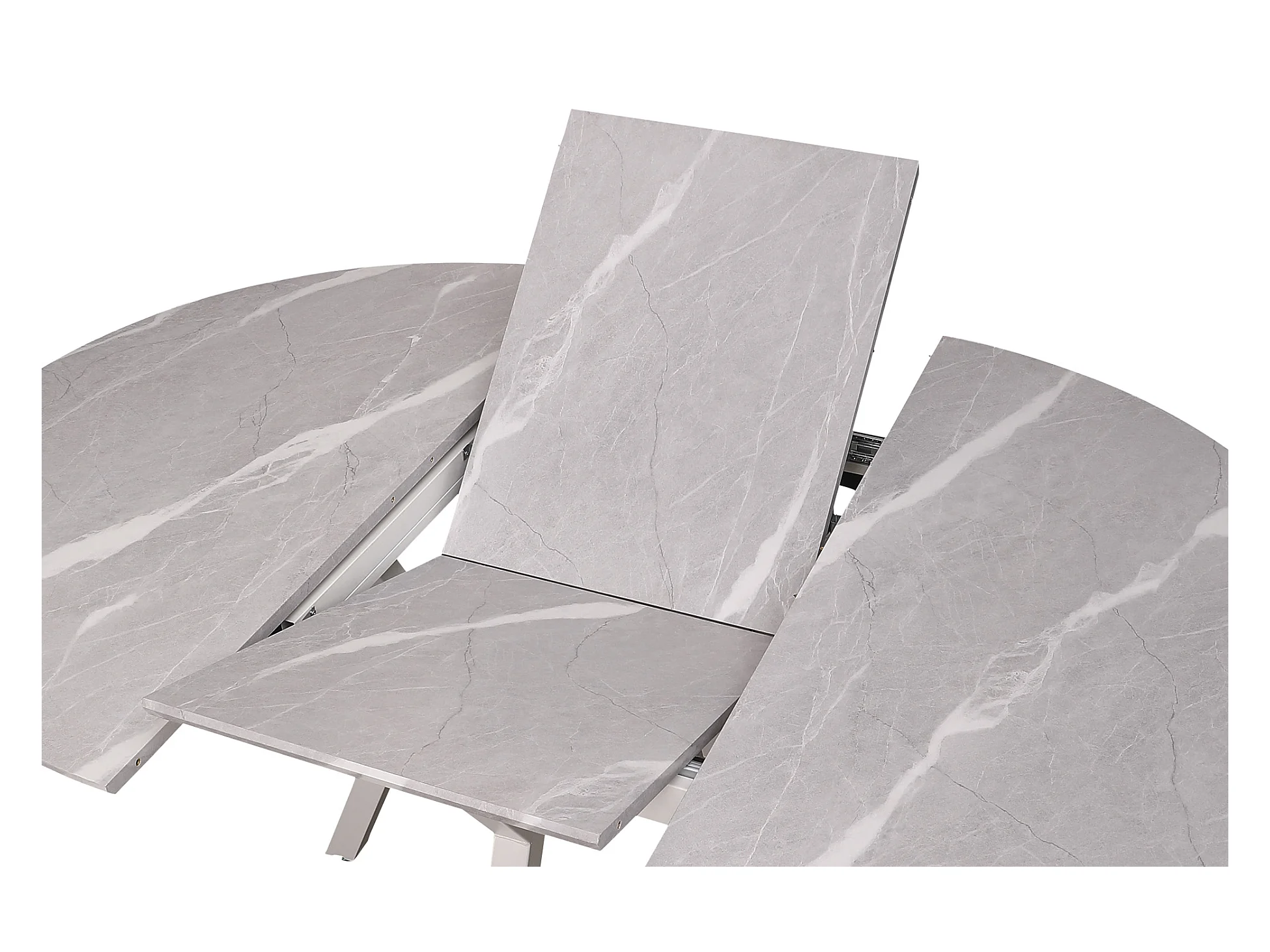 Table à manger ronde extensible coloris effet marbre gris - Longueur 130/160 x Largeur 130 cm x Hauteur 76cm