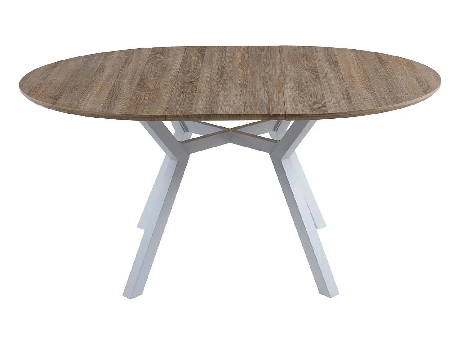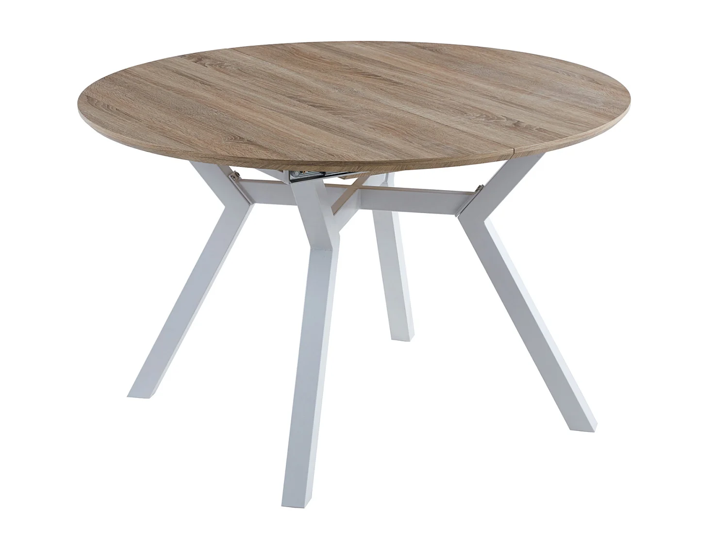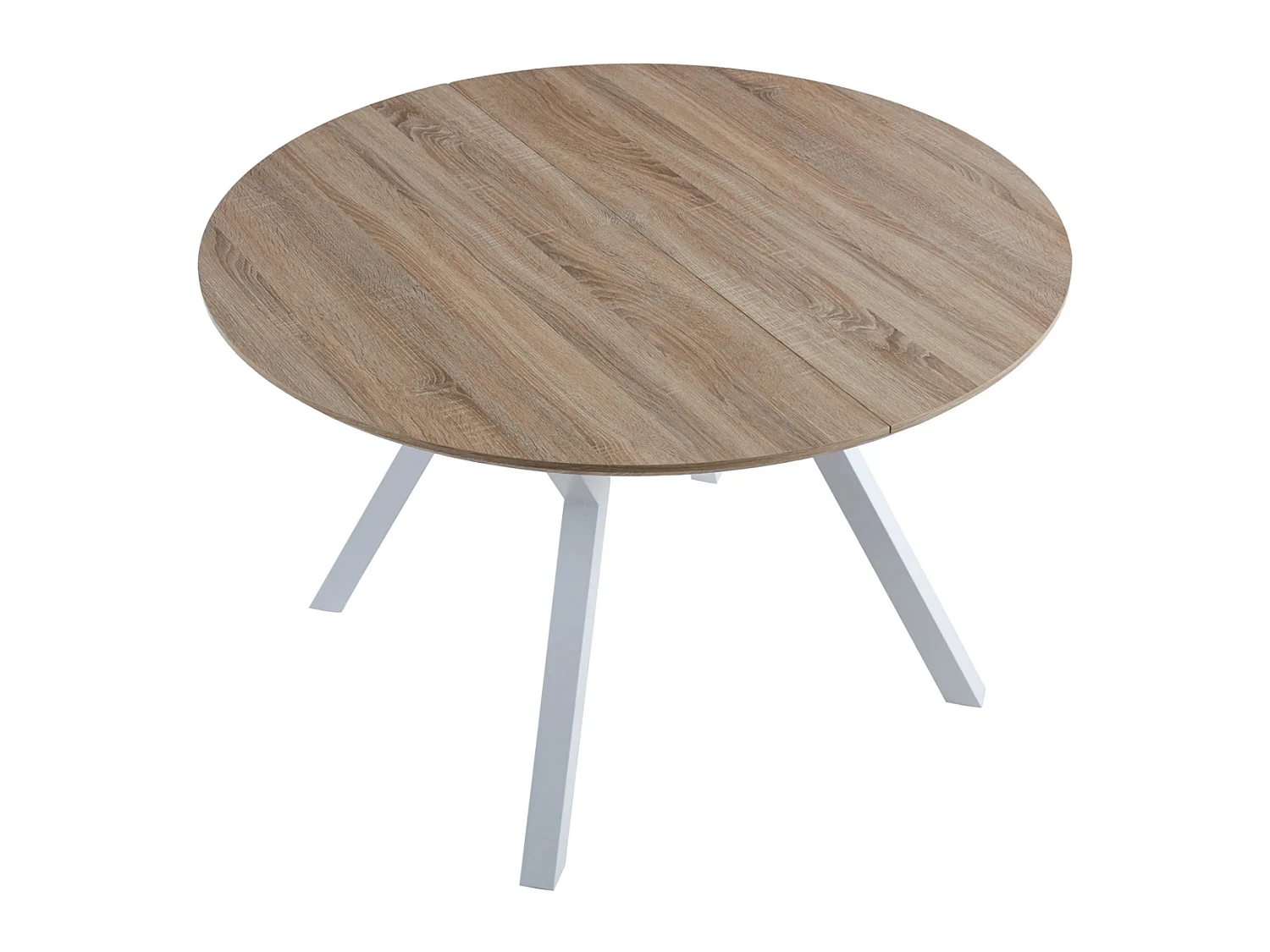 Table à manger ronde extensible en bois coloris chêne, pieds blanc