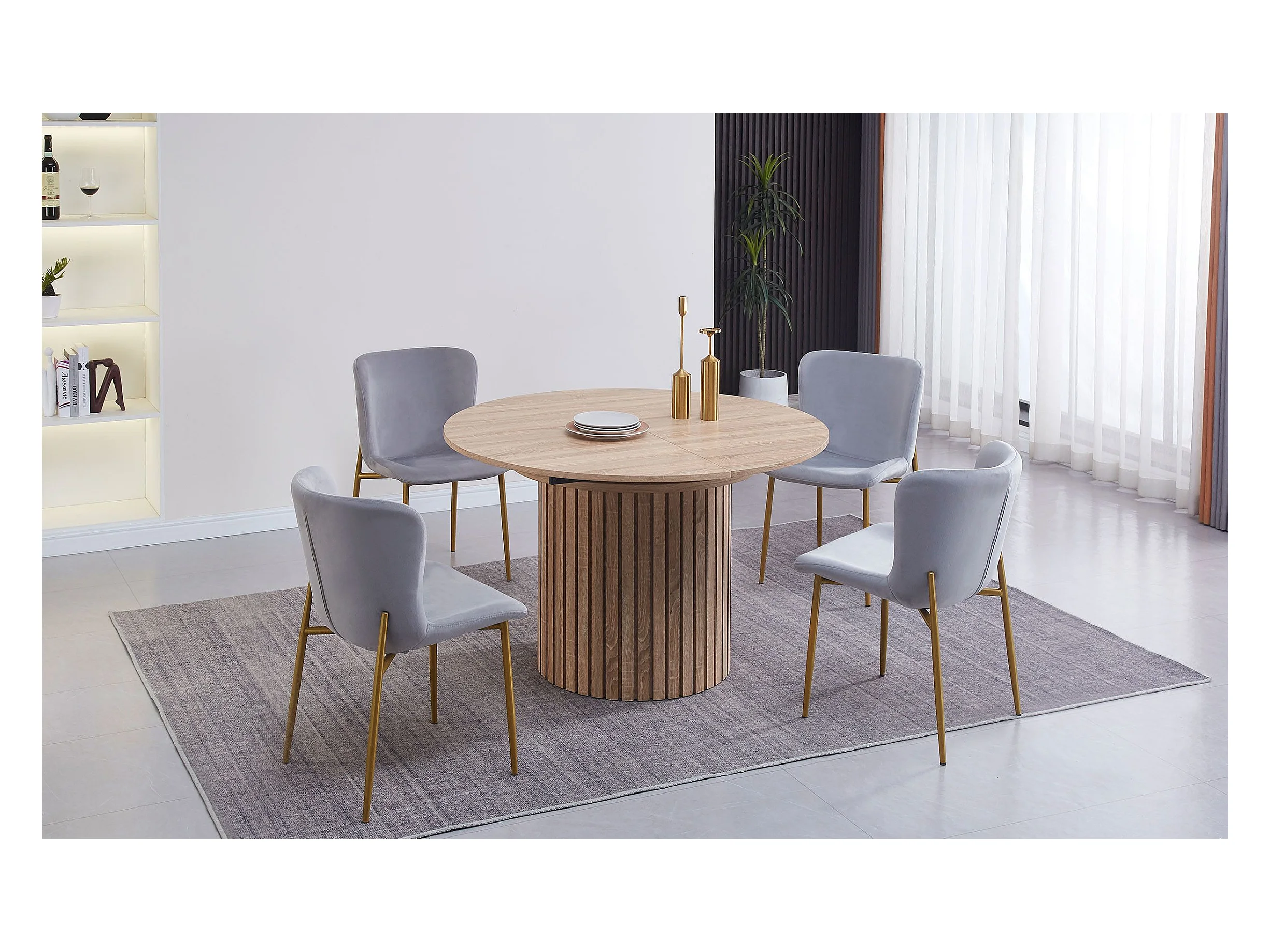 Table ronde extensible pied central style colonne Burkina 120-160cm Bois Sonoma
