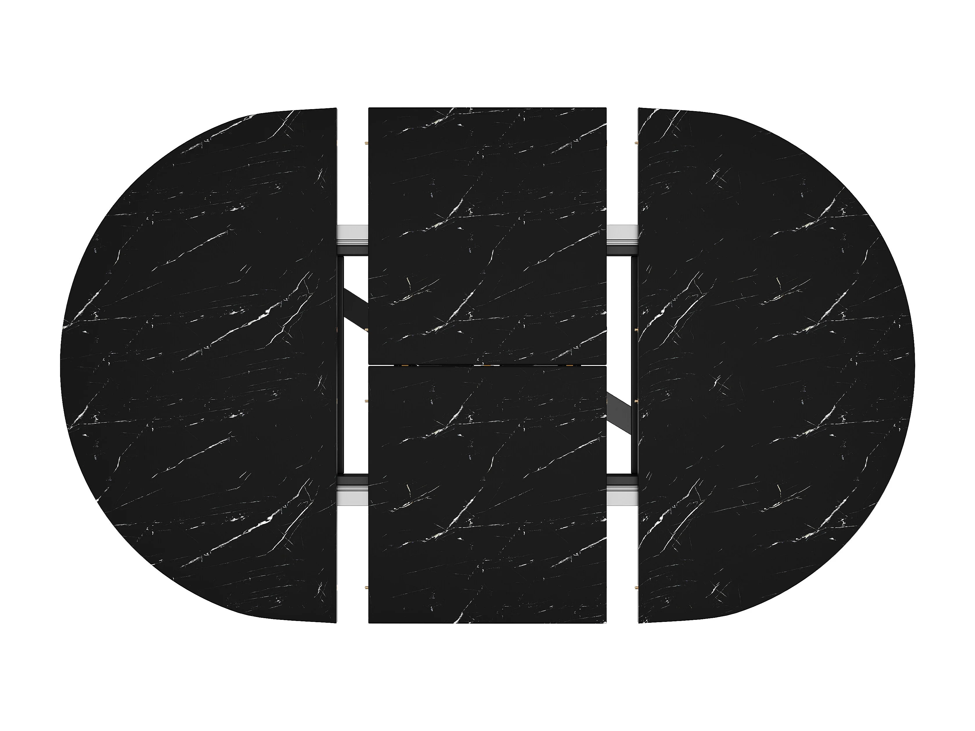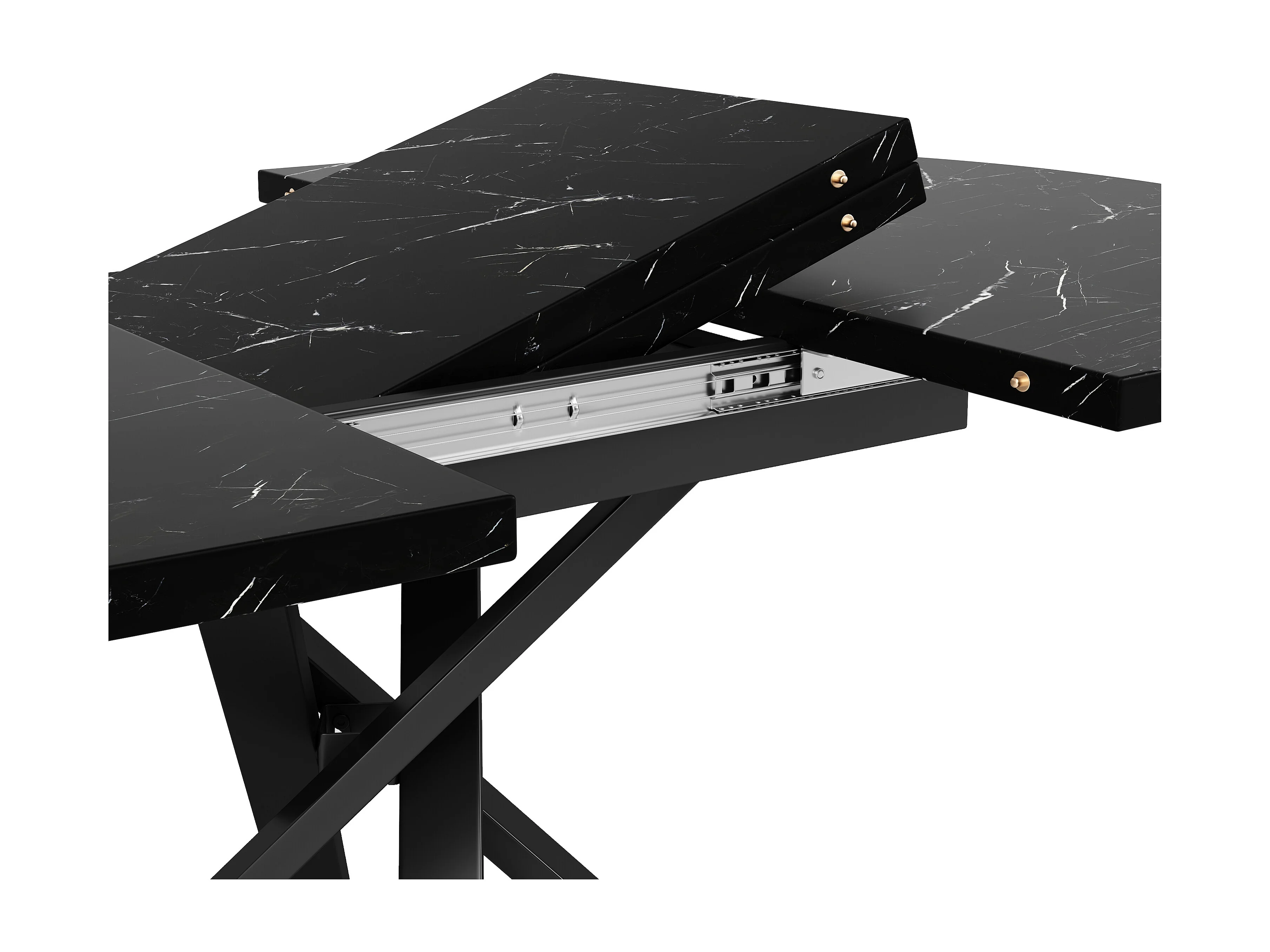 Table à manger ronde extensible noir 100-140 x 100cm -Pieds métal en forme de X - Plateau effet marbre