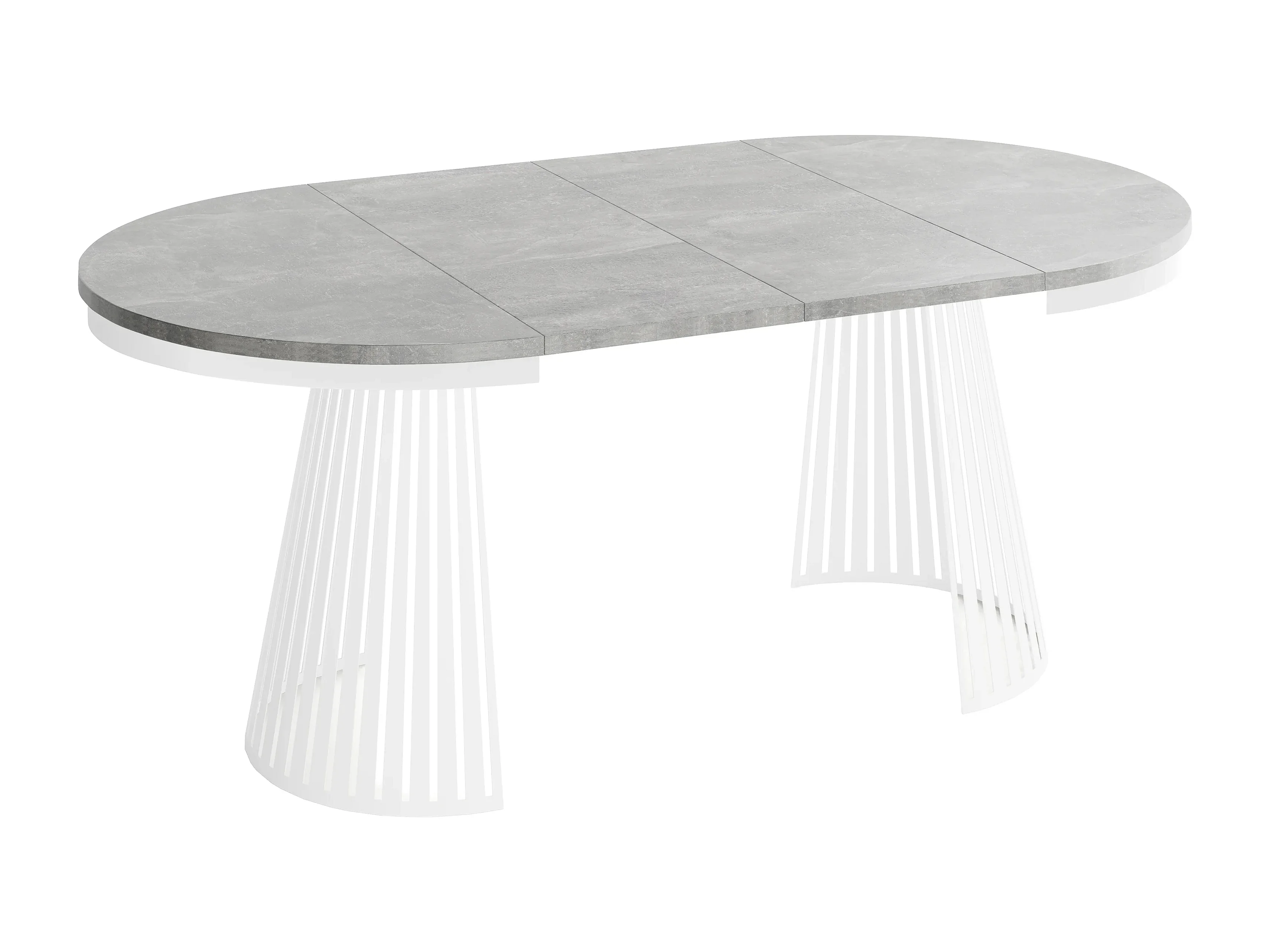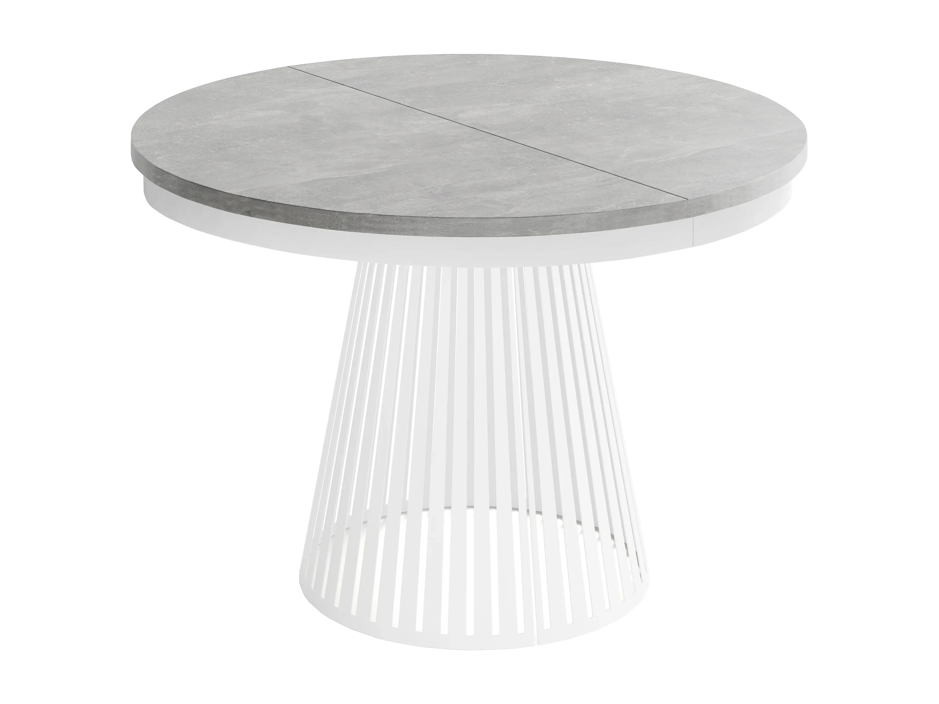 Table à Manger Ronde Extensible Style Loft – 100 à 180 cm – Design Industriel avec Pieds en Métal Blanc, Gain de Place pour Salon ou Salle à Manger – Gris Béton
