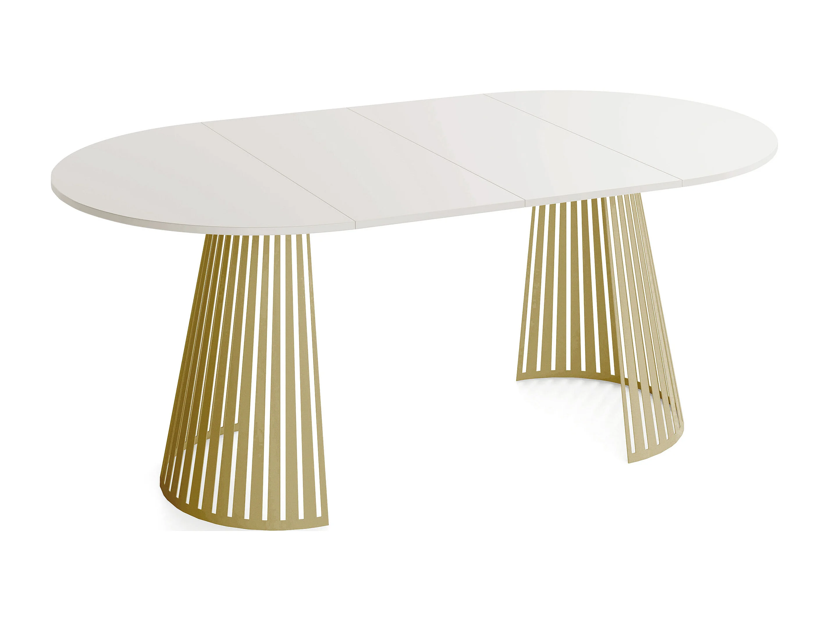 Table à Manger Ronde Extensible Style Loft – 100 cm – Design Industriel avec Pieds en Métal Doré, Gain de Place pour Salon ou Salle à Manger – Cachemire