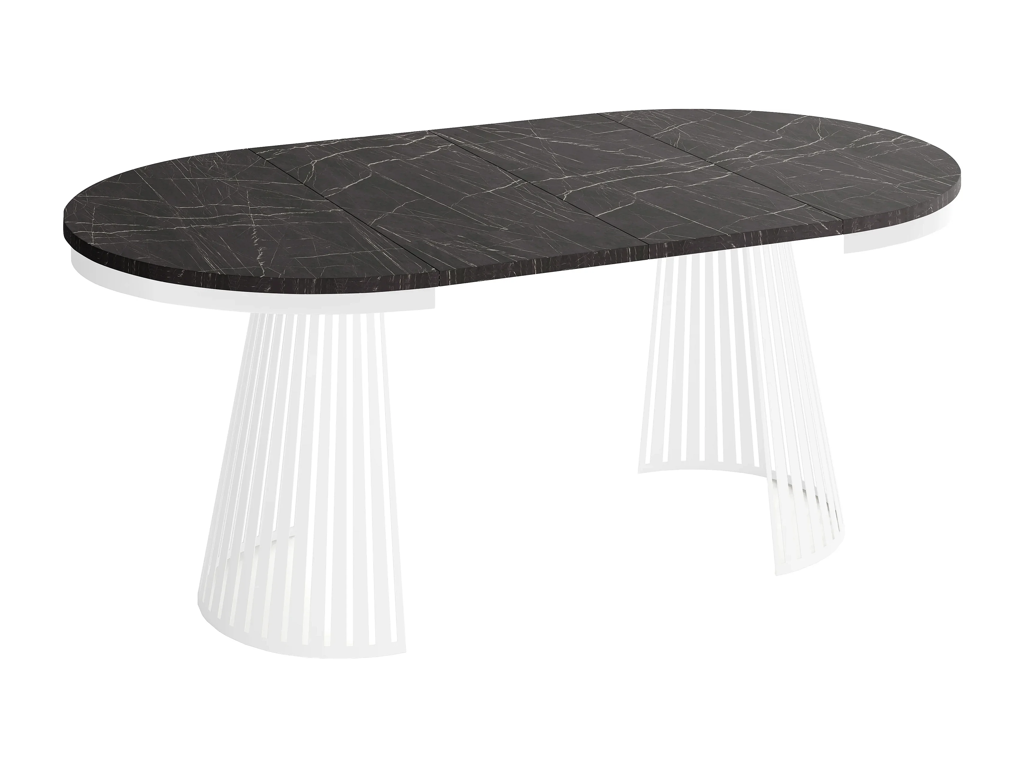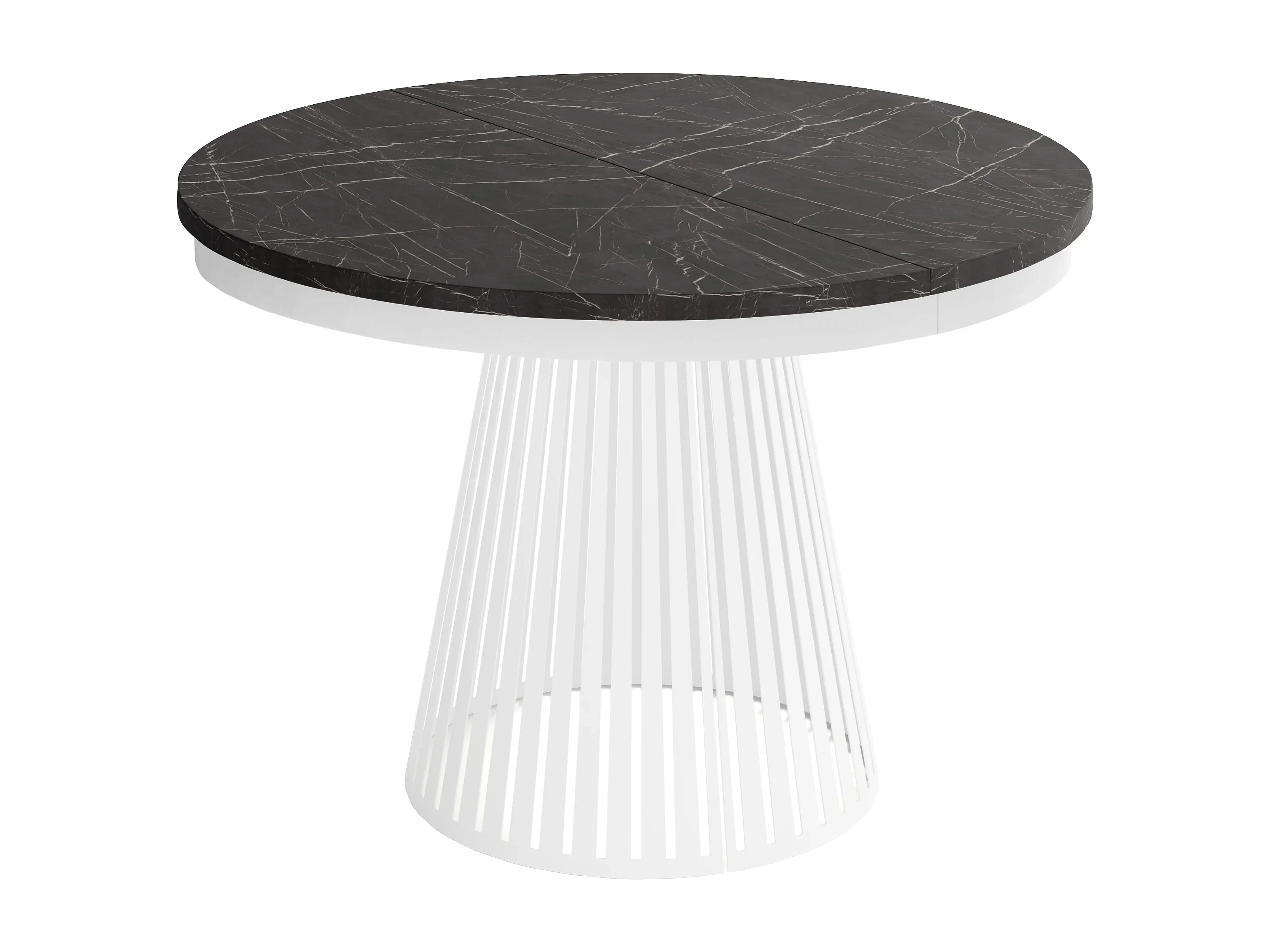 Table à Manger Ronde Extensible Style Loft – 120 à 200 cm – Design Industriel avec Pieds en Métal Blanc, Gain de Place pour Salon ou Salle à Manger – Marbre Noir