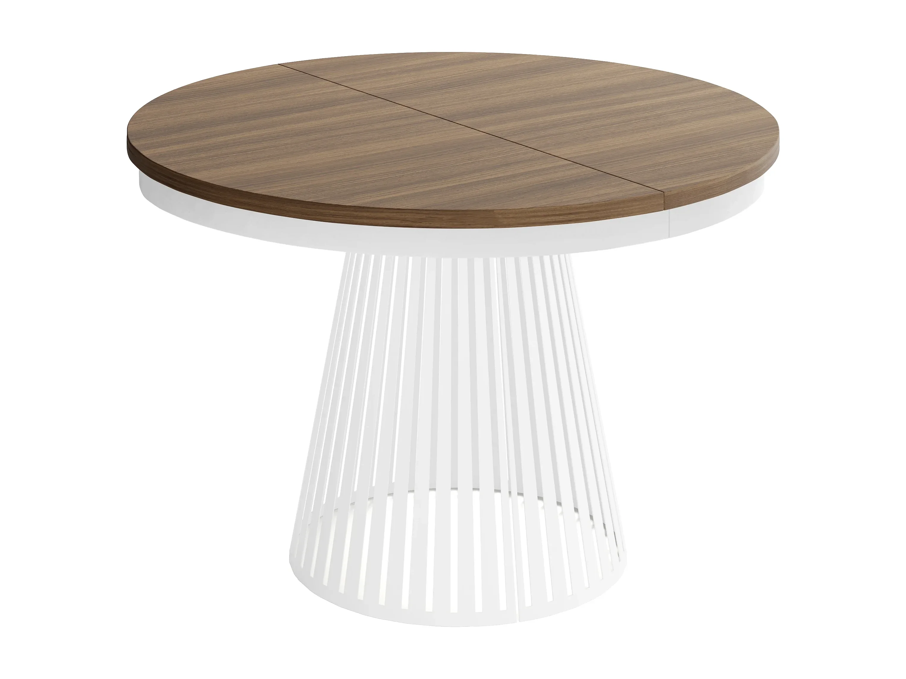 Table à Manger Ronde Extensible Style Loft – 120 à 200 cm – Design Industriel avec Pieds en Métal Blanc, Gain de Place pour Salon ou Salle à Manger – Marron Noyer