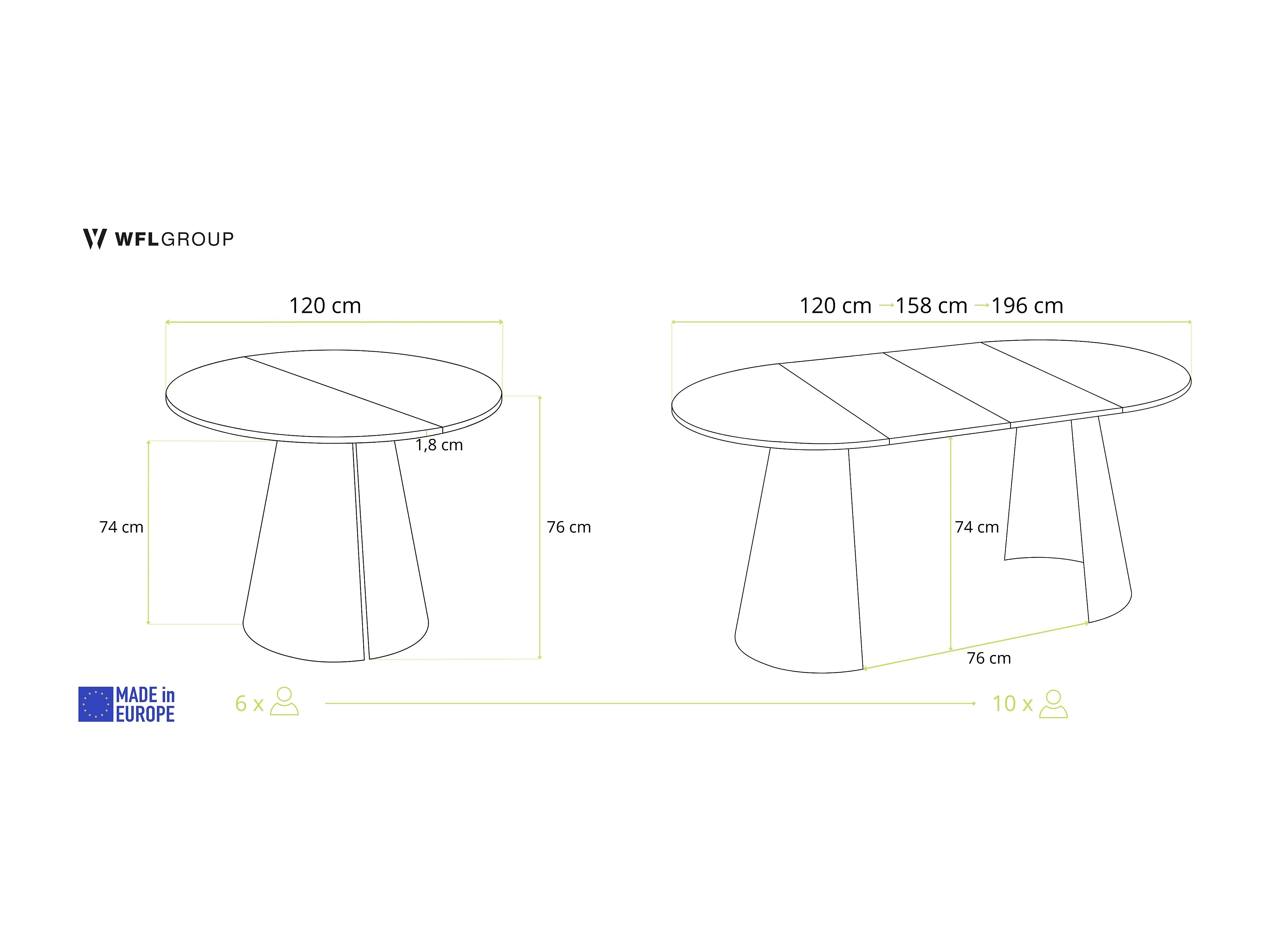 Table à Manger Ronde Extensible Style Loft – 120 à 200 cm – Table Industrielle avec Pieds en Métal Coniques Blancs pour 6 à 10 Personnes – Gain de Place – Blanc